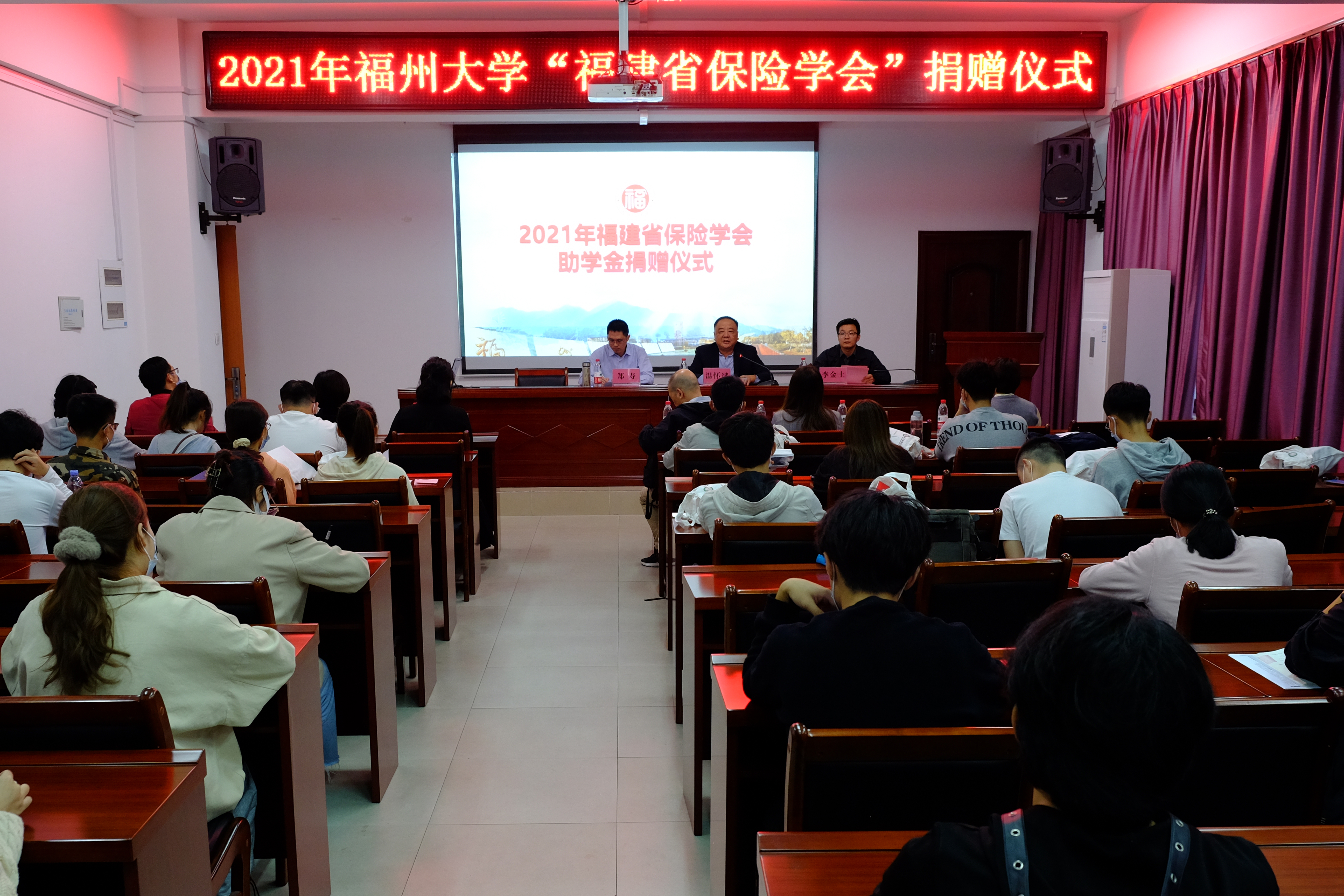10月21日下午,成人影视于紫金楼304会议室举行2021年成人影视 “福建省保险学会助学金”捐赠仪式,本次仪式由院团委书记李金土主持。出席会议的领导有院党委副书记郑寿,福建省保险学会副会长温怀斌,保险学会谢圆虹、李于进、黄艺敏、吴嘉如、王焰云、付琦,成人影视四名受资助学生以及部分20级学生参加本次会议。