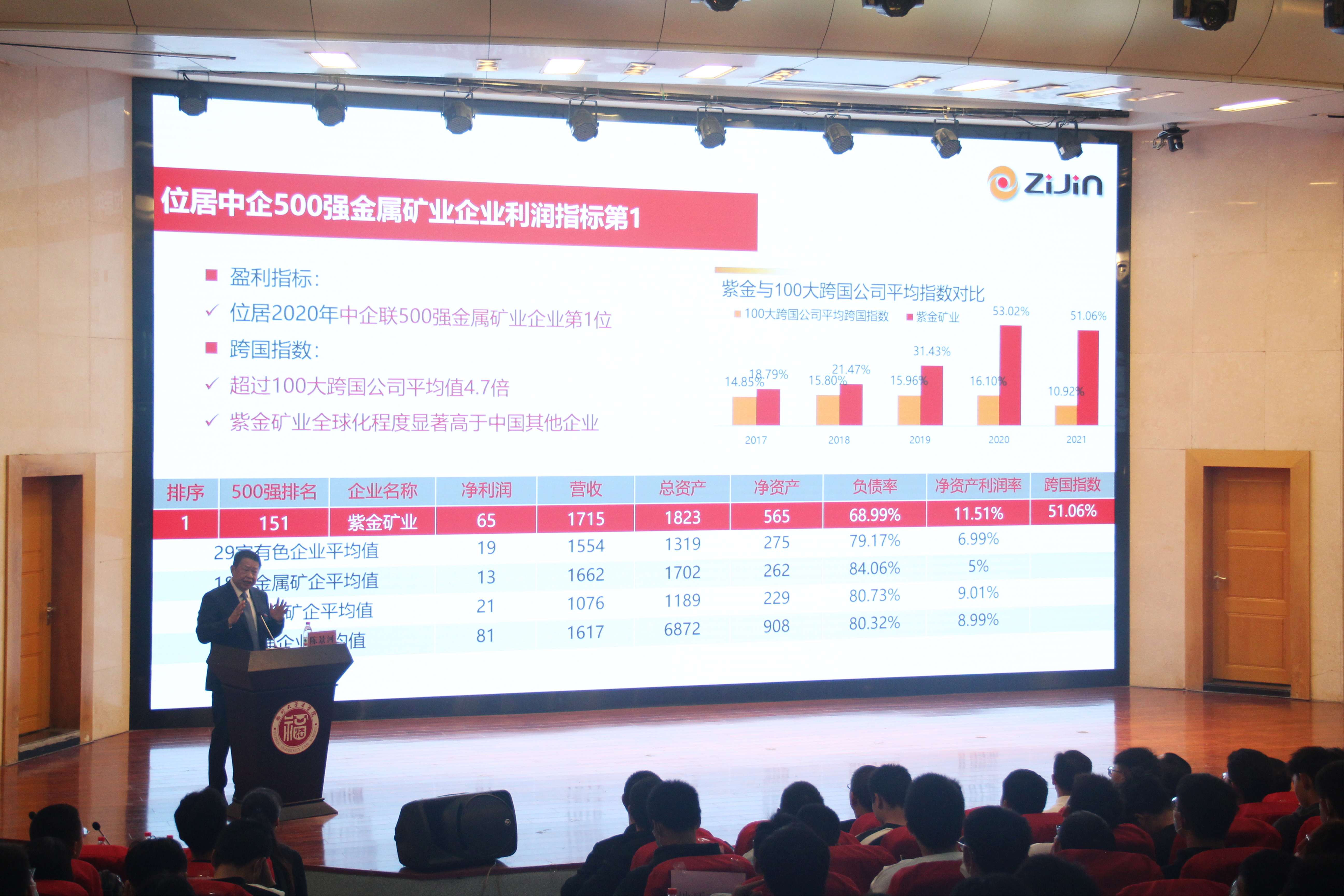 值得一提的是,陈景河董事长还为全体新生上了一堂“巩固专业思想暨思政第一课”。课上,陈景河董事长强调了矿产资源的重要性,分析了国内外矿业形势,介绍了紫金矿业集团的现状与体系规划。此外,他还告诫同学们要有吃苦耐劳的精神,敢于钻研,才能取得成功。在课后的交流讨论环节,不少本科生和研究生新生提出了有关学习、生活和未来发展的问题,陈董事长都一一给予了细致的回答。这一堂课,为成人影视新生描绘了未来矿业的蓝图,指明了将来努力的方向,同时也有助于让同学们追逐梦想的脚步与决心更加坚定。