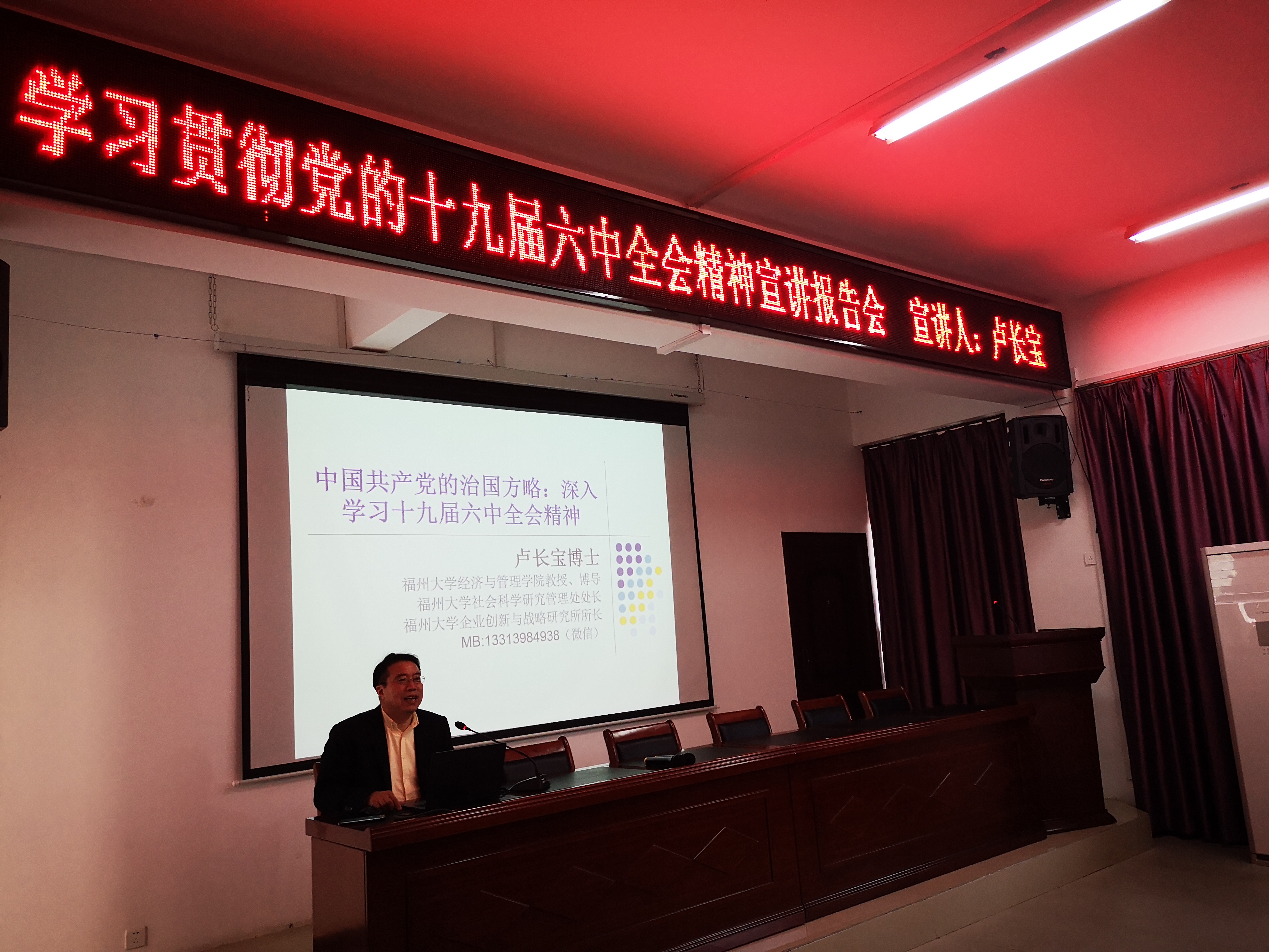 宣讲会上,卢长宝教授从战略是什么切入,阐述了中国共产党的战略是什么,从关键的历史节点分析中国共产党的理论创新与使命确立、各个阶段的任务与定位以及愿景宏伟与计策,分析了每个重要历史阶段我党对治理模式的探索与全面建设,从而得出中国共产党必将走向更大胜利的论断。
