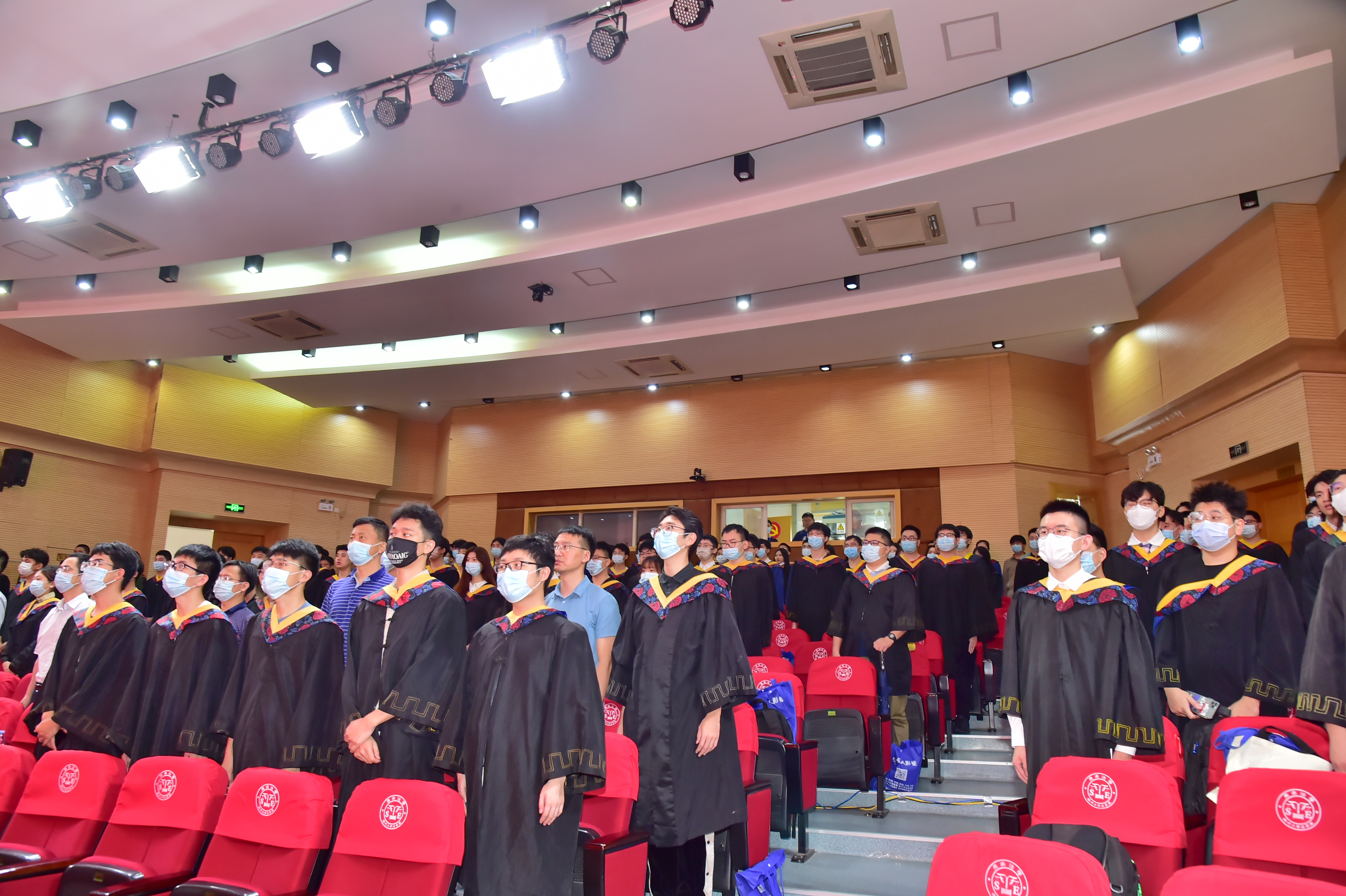 在学位授予仪式上,衷水平院长、陈志波副院长、王浩副院长、库建刚教授和胡建华教授为毕业生们颁发学位证书、执拨穗礼,并与毕业生们合影留念。最后,伴随着全体师生合唱的《毕业歌》,本次典礼圆满结束。