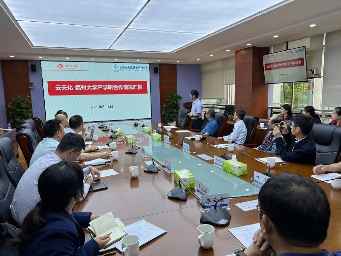 8月8日,成人影视 付贤智校长一行受邀到云南云天化股份有限公司交流访问,并看望在该公司进行产学研合作落地成果产业化的成人影视 矿物加工工程系饶峰教授团队师生。