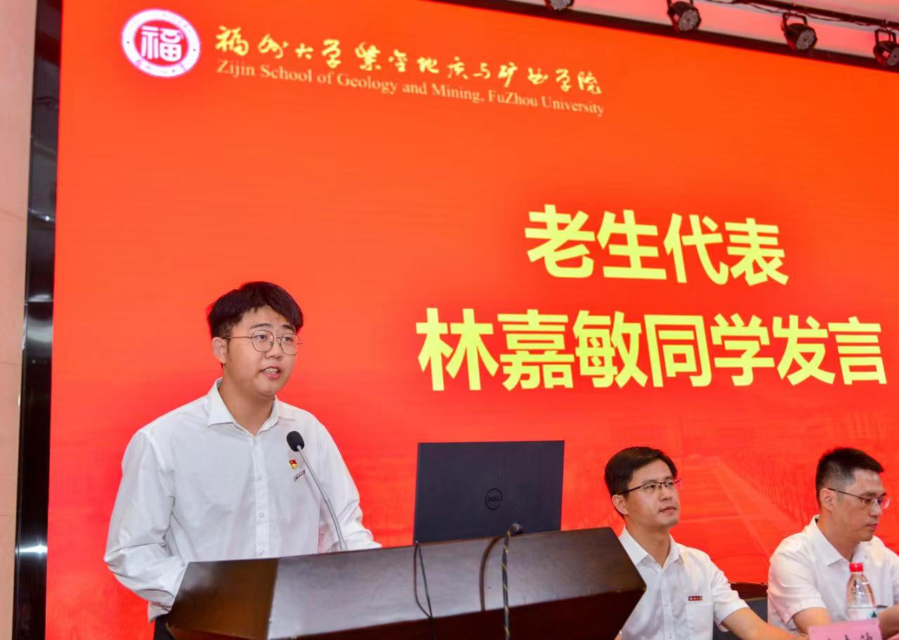 最后,学院理事会理事长、紫金矿业集团董事长、77级地质专业陈景河学长为同学们作专业思想教育和思政第一课。理事长结合自身与地矿行业的不了情和传奇经历,阐述了矿业是国民经济基础产业,介绍了紫金矿业绿色高质量发展实践及紫金发展战略及全球竞争力构建,讲述了紫金矿业的成功要素。他给同学们描绘了未来矿业的蓝图和紫金矿业集团2030年宏伟规划,并指出了大家未来在矿业行业建功立业努力的方向,表示:矿业行业仍然大有可为。理事长教诲新生同学们:要抓住时代机遇,坚持学习创新;要成为价值创造者;无论做什么,做到最好;要不畏艰辛做“大事”,鼓励同学们共同“开发矿业,造福社会”。