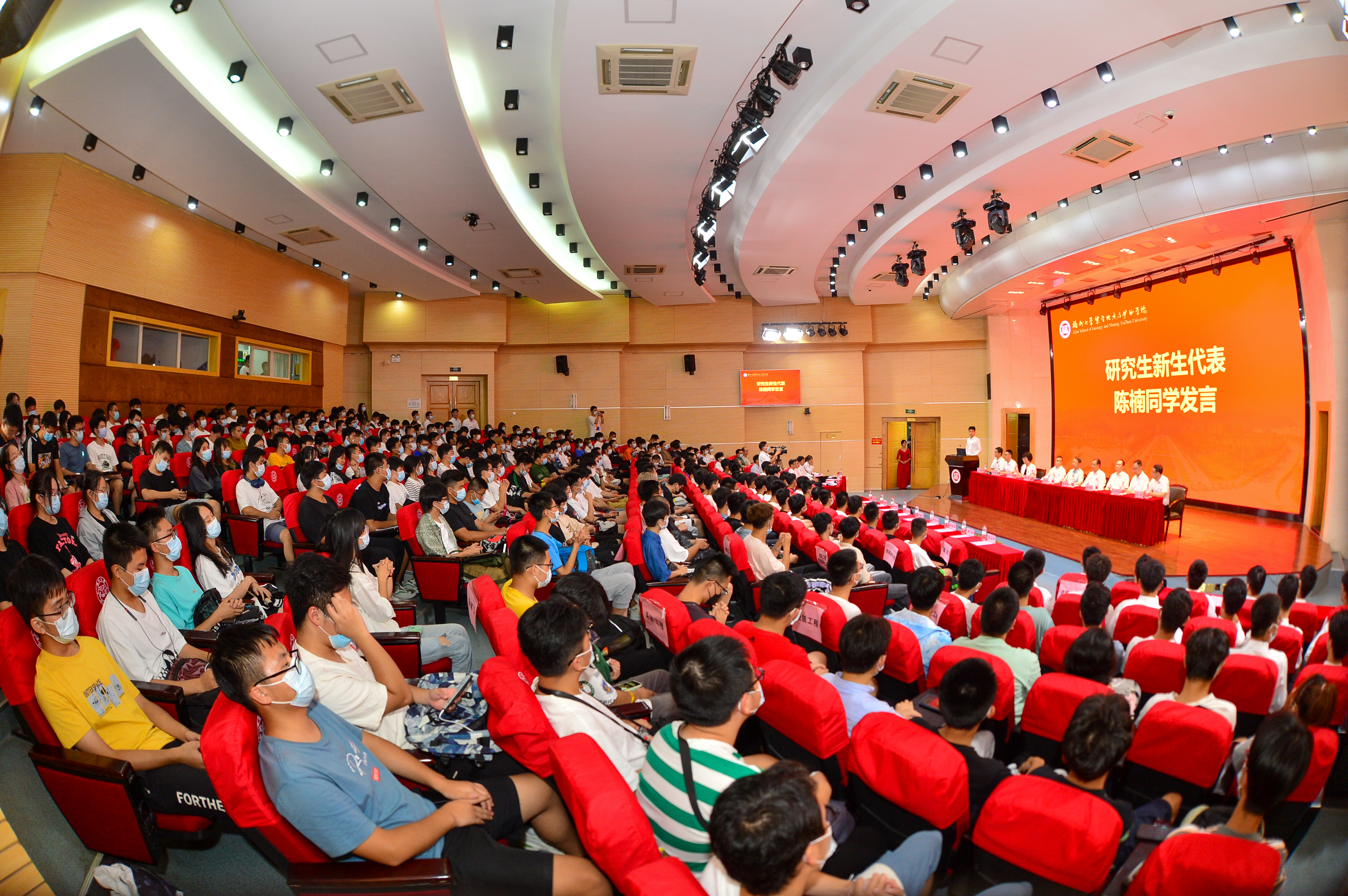 在威武庄严的国歌声中,开学典礼拉开了帷幕。王黎婷同学、陈楠同学作为本科生和研究生新生代表、院学生会执行主席林嘉敏同学作为老生代表分别发言。院长助理胡建华教授作为教师代表发言。