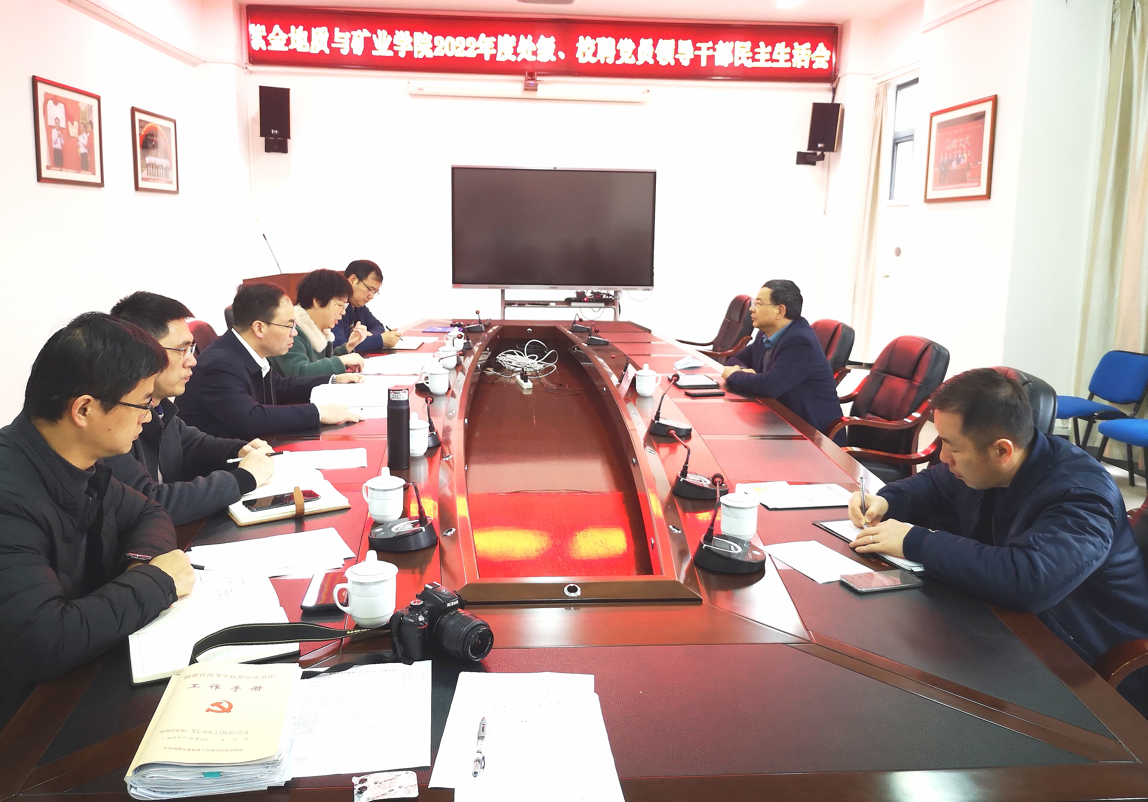 2023年2月20日上午,成人影视 在219会议室召开2022年度处级、校聘党员领导干部民主生活会,学校黄志刚副校长参加会议并做点评,会议由学院党委书记徐雪玉同志主持。