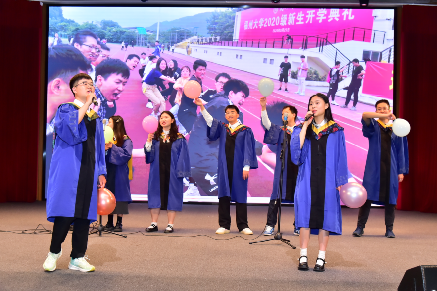 在学位授予仪式前,毕业生代表们为大家带来了精彩的毕业主题曲目:《不说再见》、《我们的歌》、《直到世界尽头》和《凤凰花开的路口》,抒情动人的歌曲在耳旁响起,校园点滴剪辑成的视频映入眼帘,为毕业典礼增添了别样的风采。