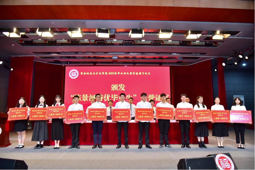 领导嘉宾为“陈景河特优毕业生”获得者颁奖