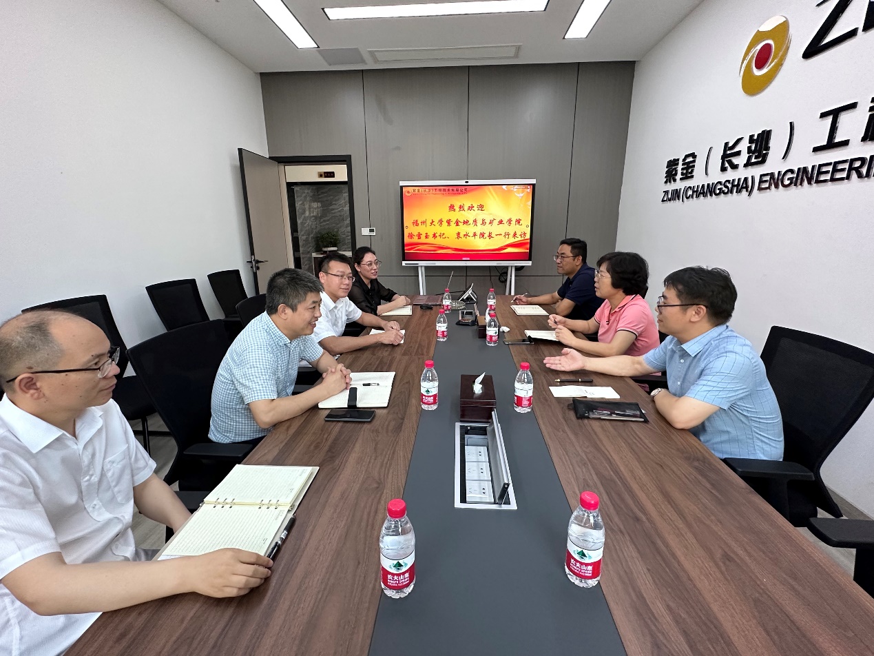 徐雪玉书记首先对紫金长沙公司总经理黄明发的邀请表示感谢,针对企业未来的发展规划和公司定位,指出加大研究生培养合作和定向培养的思路。胡建华副院长介绍了采矿专业本科生、研究生招生及就业情况。