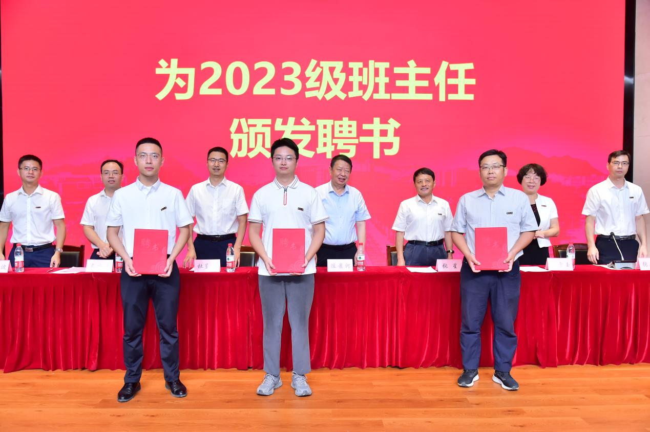 为形成以立德树人为中心的多维育人格局,构建“三全育人”格局,紫金学院全面推行“班主任”制度。典礼上,领导嘉宾为2023级本科生班主任颁发聘书。