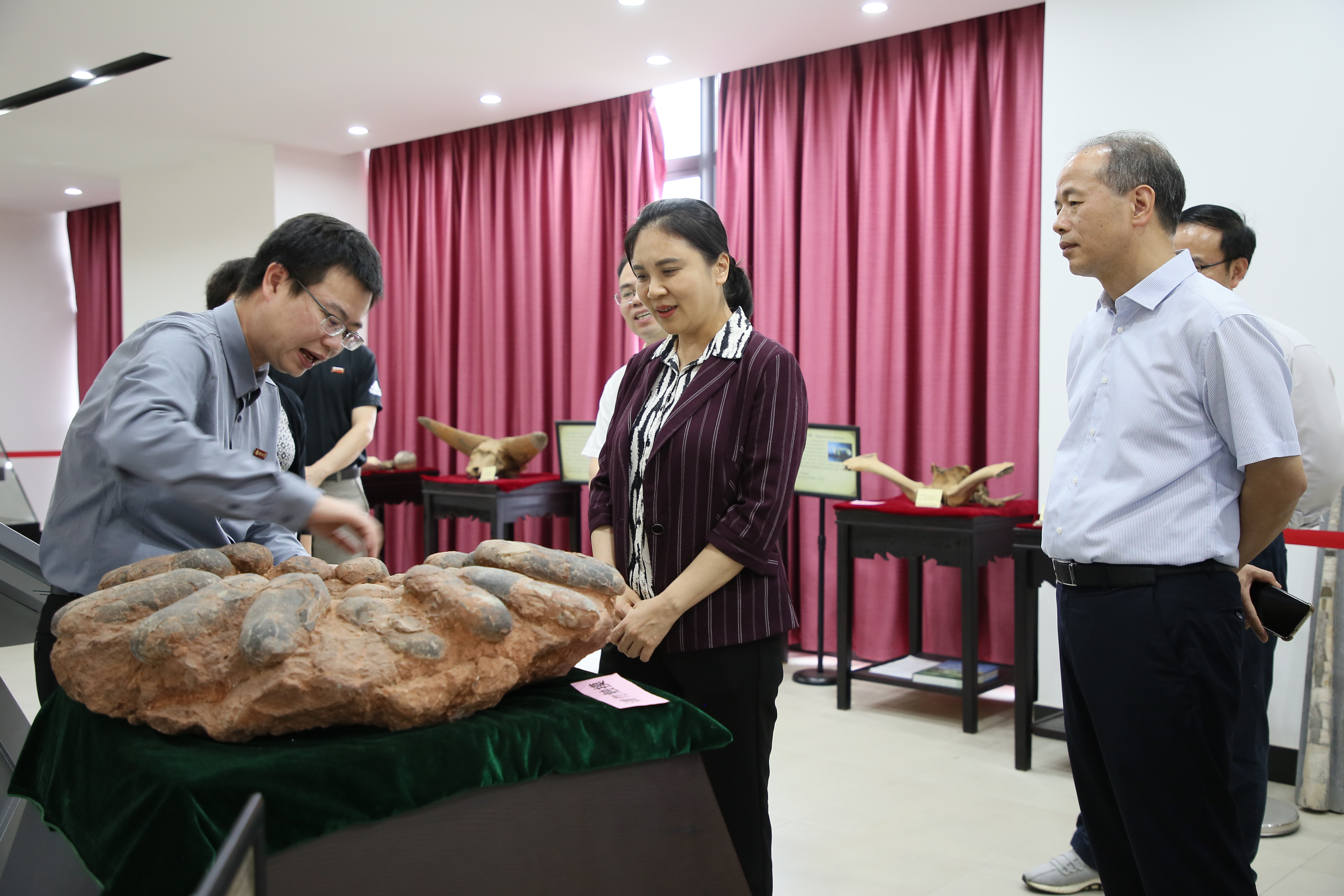 吴明红校长首先参观了地矿博物馆。地矿博物馆作为学院展示地矿学科魅力的窗口,吸引了吴明红校长的浓厚兴趣,馆内陈列着丰富的地质矿产标本,展现了地球演化的壮丽画卷和矿产资源的丰富多样。校长仔细听取了讲解员的介绍,不时驻足观看。她强调,地矿博物馆不仅是学院的一张亮丽名片,更是开展科普教育和学术交流的重要平台。随后,吴明红校长走访了学院实验室、教师及研究生工作室,实地与师生进行交流,了解学院各项工作开展情况。