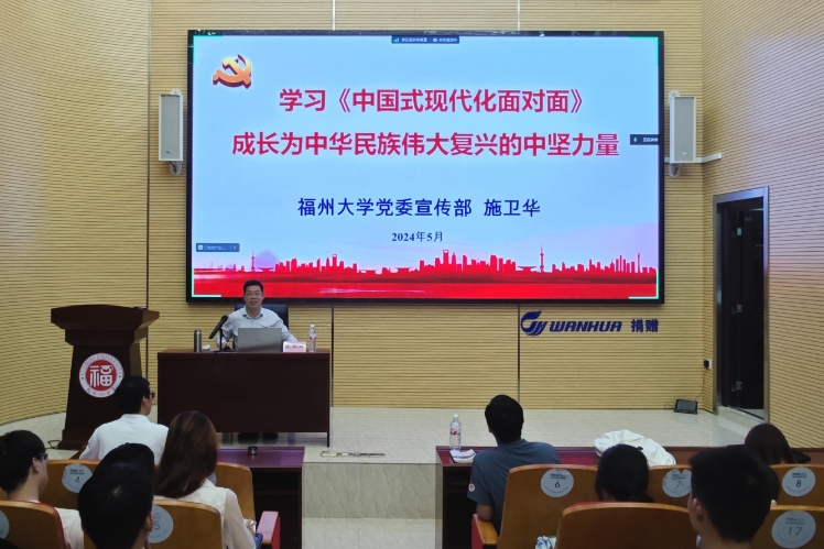 随后,施卫华部长以《学习<中国式现代化面对面>,成长为中华民族伟大复兴的中坚力量》为主题开启了本次培训班的第一讲。他向大家阐述了中国式现代化的定义以及中国式现代化的特点,并着重从发展历程、发展特征、发展前景等方面解读中国式现代化。