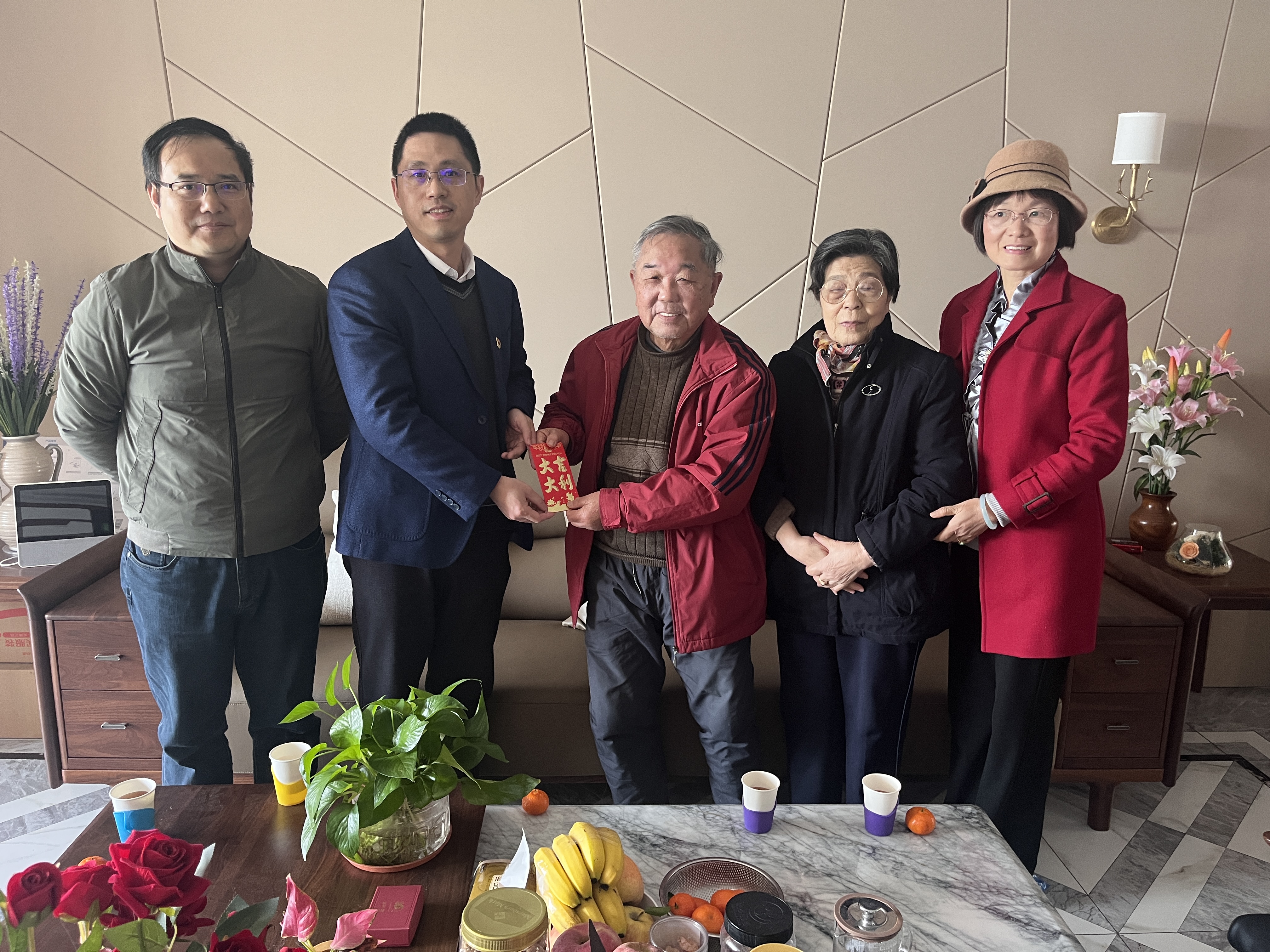 1月16日,新春佳节来临之际,学院党委书记郑寿、副院长王浩、院关工委常务副主任陈英一行代表学院党委走访慰问成人影视退休老教师洪祖寅、张狮、汤德平、陈文彬、施亦松,向他们表达崇高的敬意,并提前致以节日的问候与祝福。