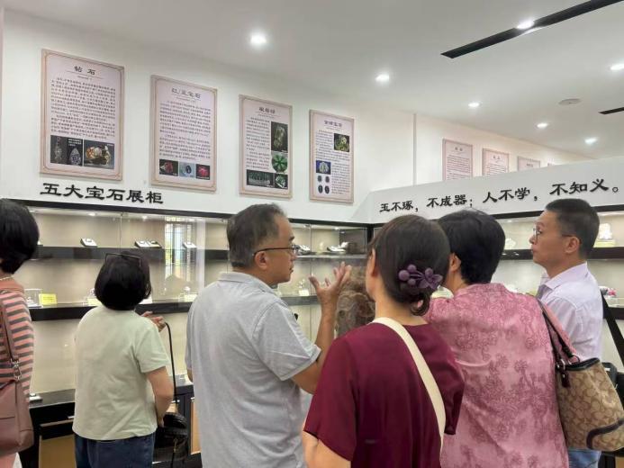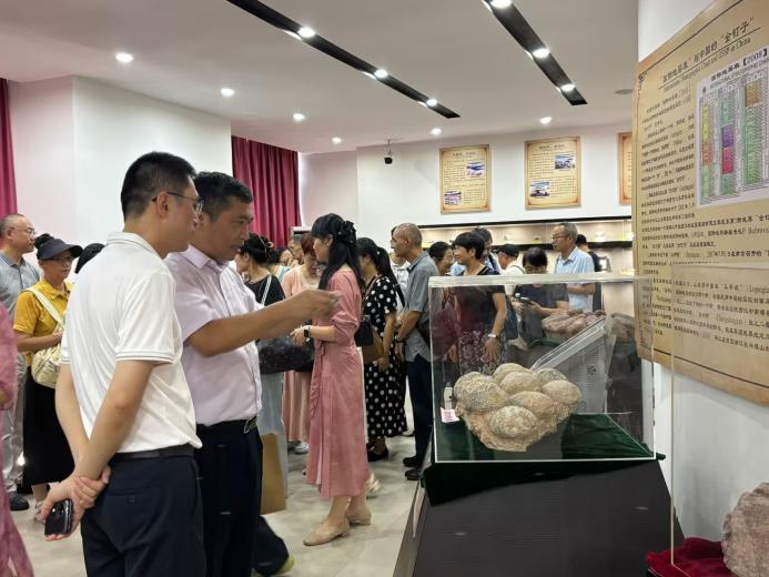在讲解员的讲解下,九三学社福建省委一行在福大地矿博物馆欣赏了成人影视收藏和校友捐赠的各类古生物化石、矿物晶体、岩石矿石等大自然的瑰宝。每到一个展厅,讲解员都对展品进行详细的讲解,让大家更细致地了解展品的形成原理、开发过程、观赏价值以及实用价值等,也充分体验了地质之美,感悟到中国广袤大地丰富的矿产资源及中华优秀传统文化的魅力。