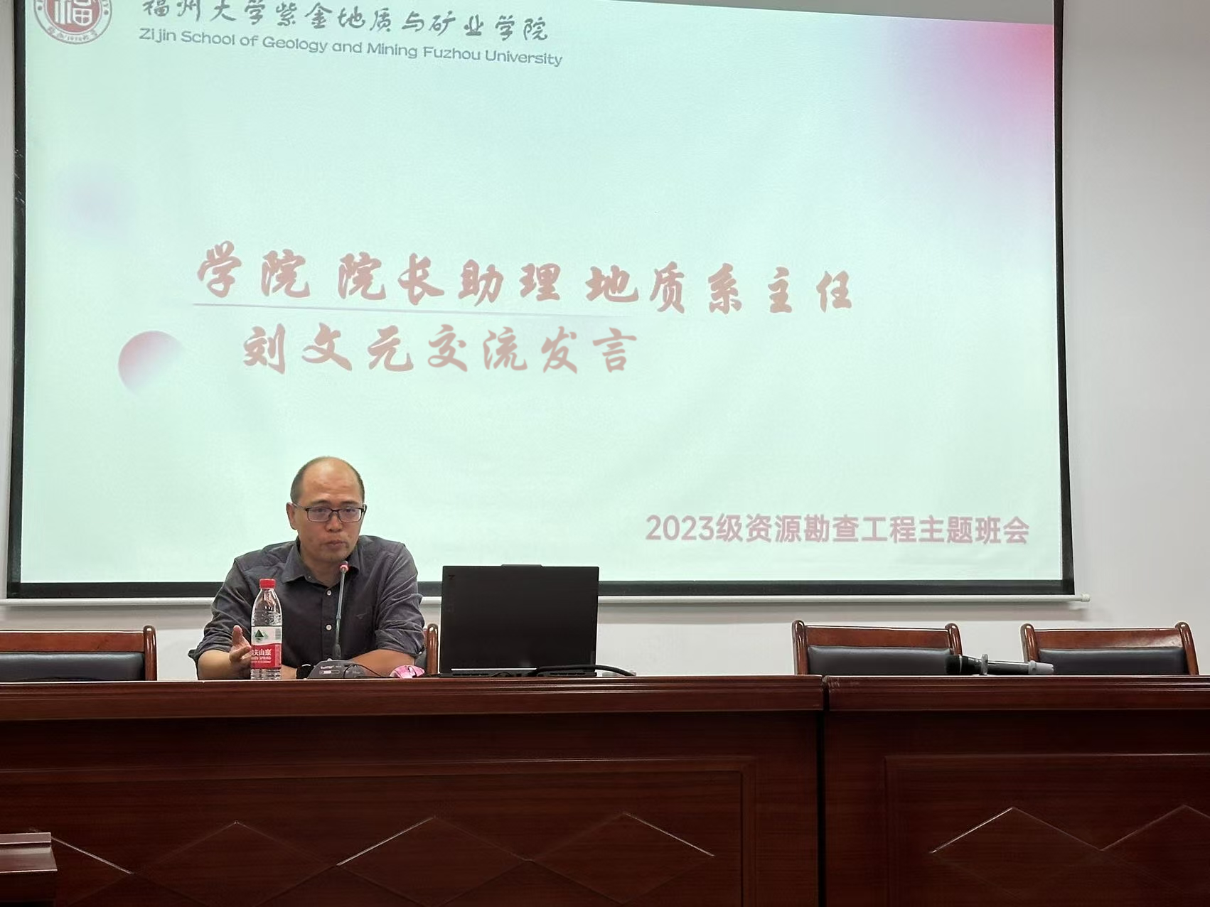 院长助理、地质系主任刘文元强调了地质专业正处于国家需求专业的重要位置,需要打牢专业课知识,并且询问同学们对地质行业的态度,教会大家:选择不是“随大流”,而是基于对行业价值的认同、对自我定位的清晰。鼓励大家参与活动、多与老师交流,让同学们跳出“书本局限”,了解行业动态、链接优质资源,让学习路径更清晰、更扎实。