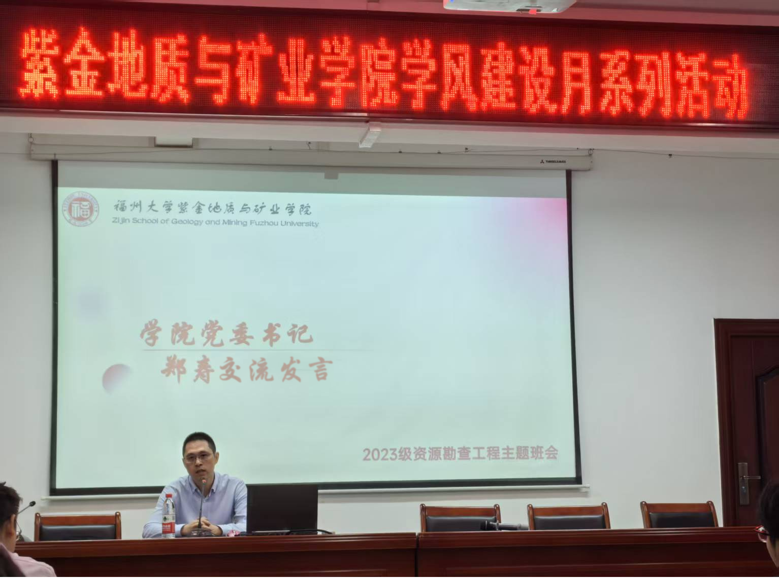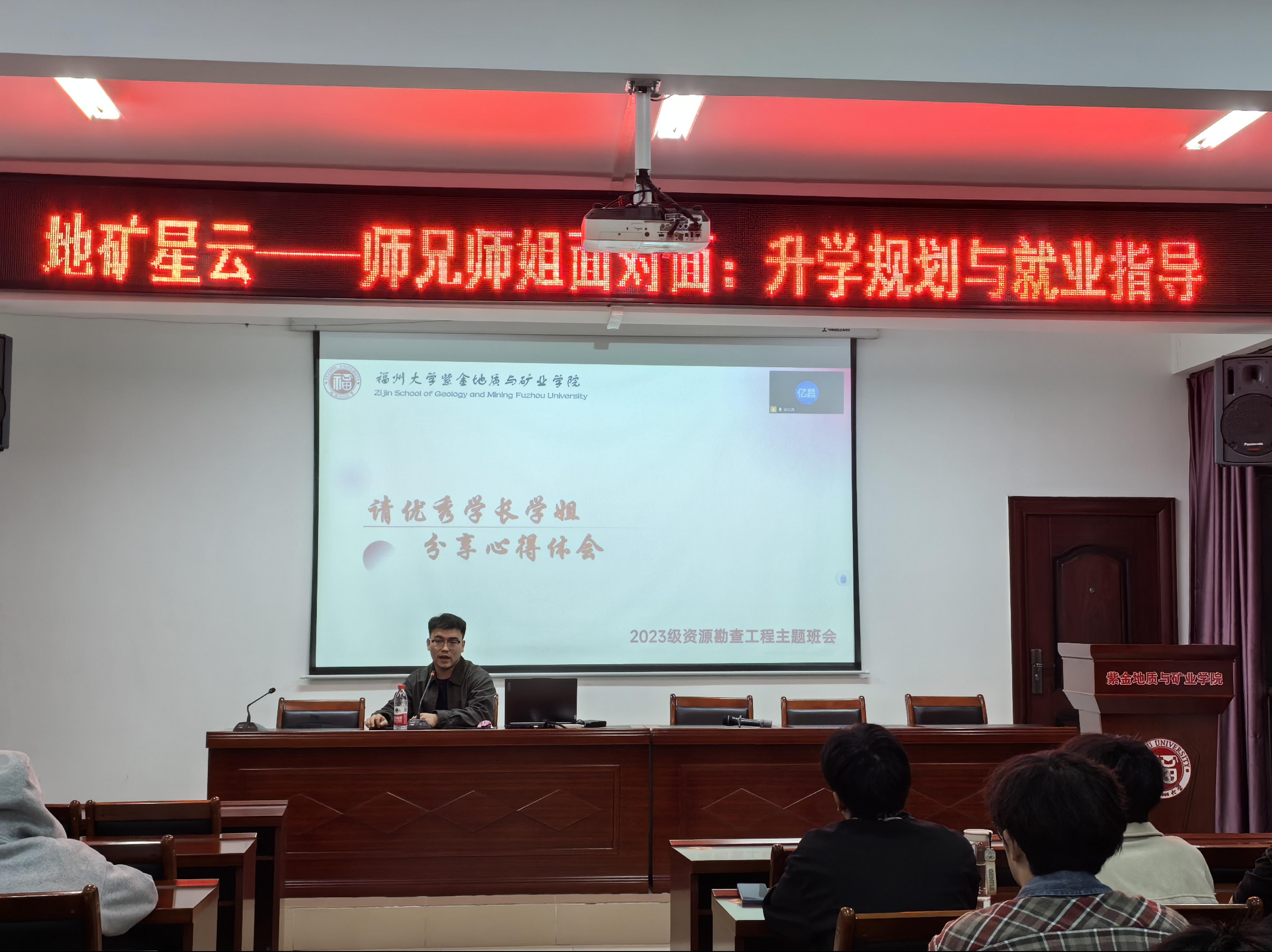 为加强学生职业规划意识,提升就业竞争力,同时明确学习目标,抓好学院基础学风建设工作。10月28日,2023级资源勘查工程专业以“职未来,解疑惑,强根基”为主题召开班会,旨在为同学们拨开学业与职业选择的迷雾,并凝聚“以地质之力服务国家发展”的专业共识。本次班会由班导师谢其锋主持,资源勘查工程专业全体同学参与,学院党委书记郑寿、副院长胡建华、院长助理兼地质系主任刘文元、学院团委副书记兼辅导员谢仁栩出席会议。多位优秀学长学姐分享了宝贵的实战经验。