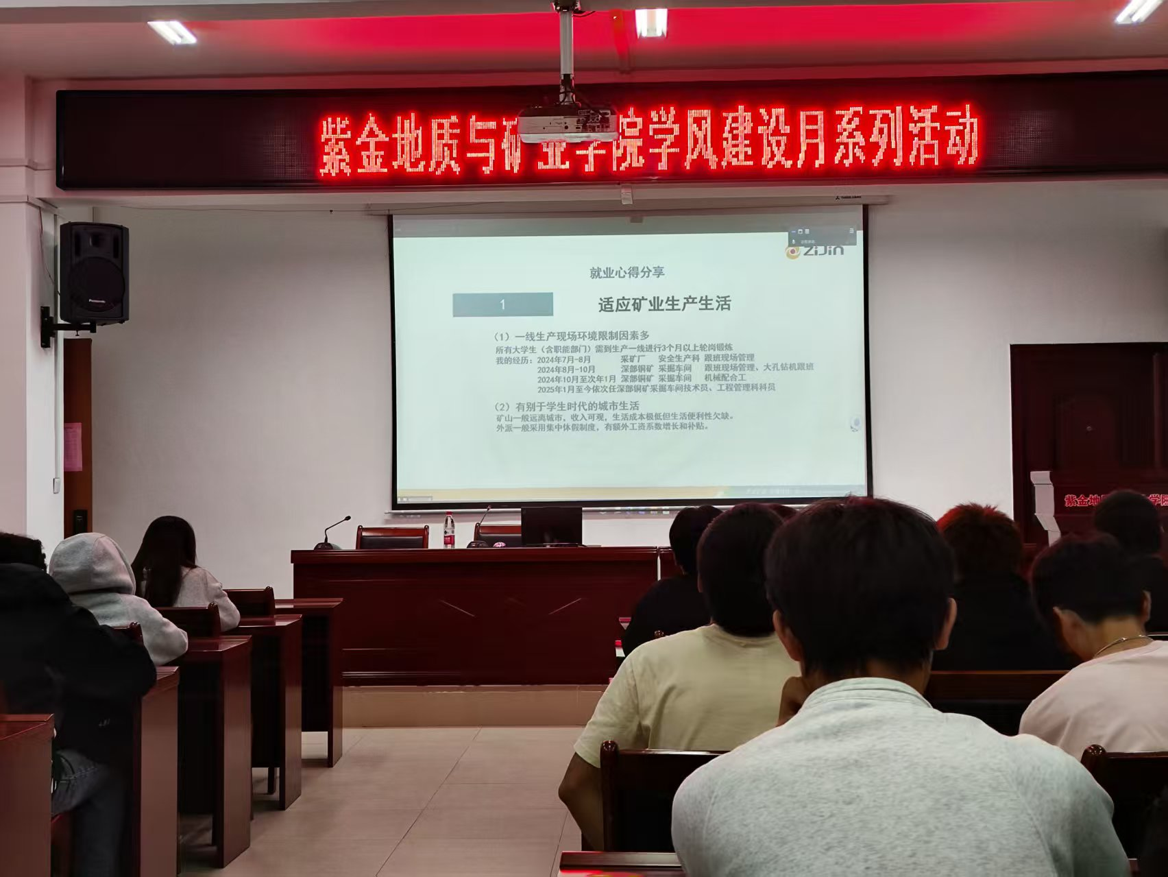 紫金学院2024届毕业生,目前在紫金集团工作的杨灿学长分享就业准备与就业心得。他认为“重视数学与英语”,不仅是对学习的要求,更是职业发展的“敲门砖”。他讲到自己毕业后在公司先轮岗实习半年,在试用期过程中,要尽早明确自己的工作方向,学会从小事做起,才能快速成长。