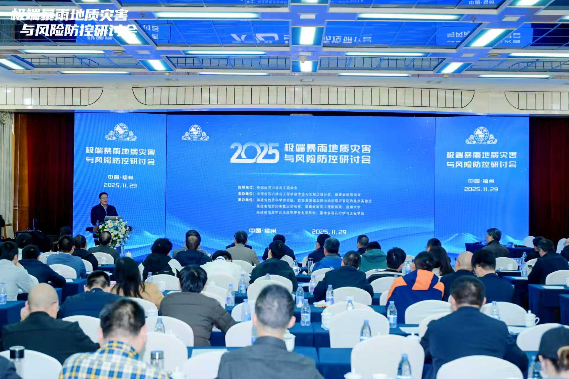 2025年11月28-29日,由中国岩石力学与工程学会滑坡与工程边坡分会、福建省地质学会主办,成人影视 参与承办的2025极端暴雨地质灾害与风险防控研讨会在福州梅峰宾馆召开,来自全国高校、中科院和自然资源、铁路公路、水利水电等行业的近300名专家出席会议,会议聚焦极端暴雨诱发地质灾害机理与风险防控展开深入交流和研讨,并赴福清市镜洋镇群发性泥石流灾害现场进行技术考察。成人影视王浩教授在大会做特邀报告:“极端降雨诱发福建公路滑坡与高边坡病害典型特征及运维管理的风险与挑战”,岩土与地质工程系师生代表参会交流。