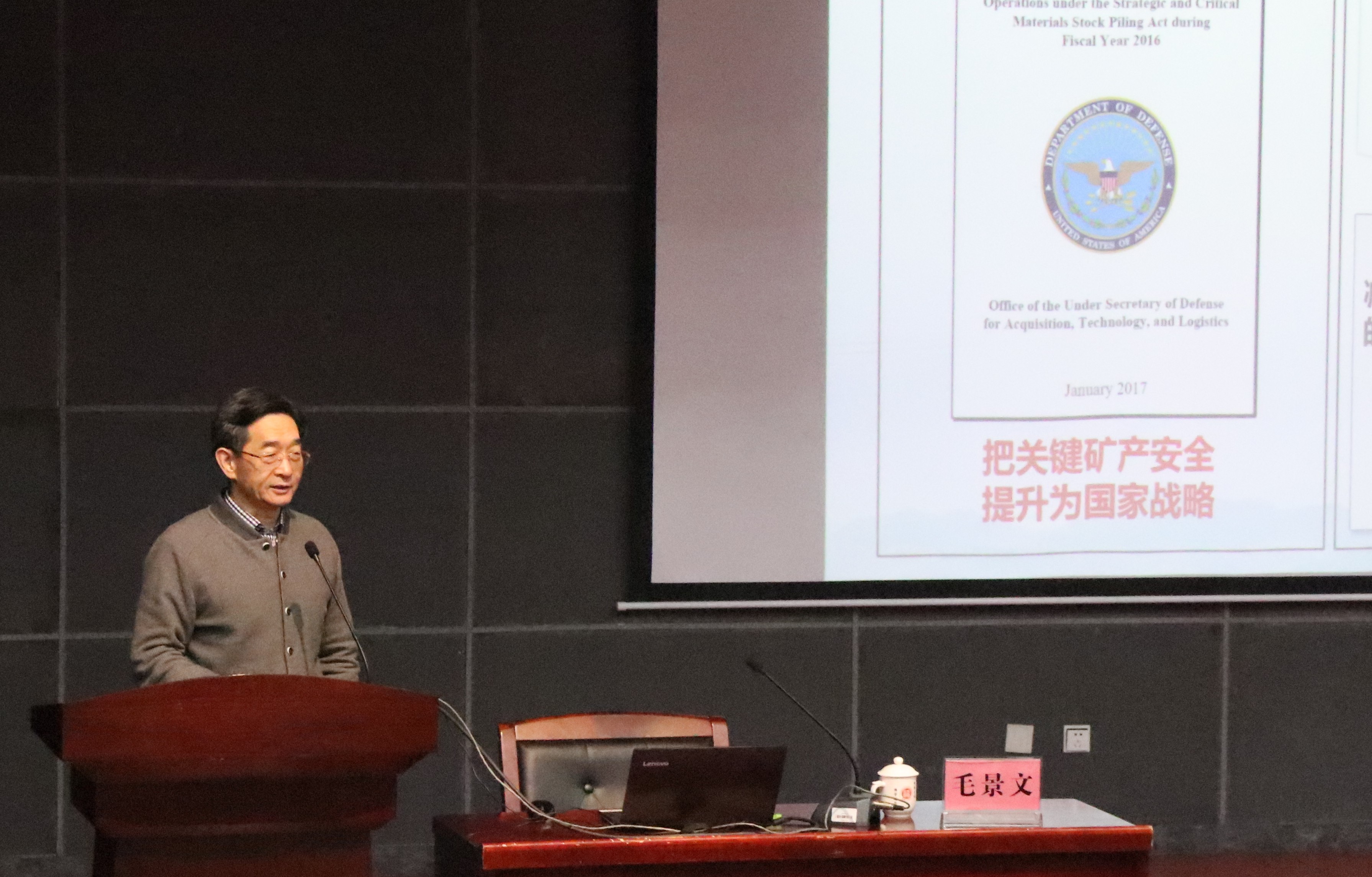 在两个小时的报告里,毛景文院士以其广博深厚的知识、深入浅出的语言,分别从“关键矿产”和“深部找矿”两方面系统阐述了我国关键矿产的研究进展和未来深部找矿战略的规划实施。在“关键矿产资源”中,毛景文院士结合欧、美、澳等西方国家的关键矿产政策及战略、全球供需形势以及我国探明资源禀赋特点,对我国的关键矿产划分为了主导性、技术和条件制约型、市场制约型和资源短缺性4类,并简单描述了我国在该方面的主要勘查成果和研究新进展。在“深部找矿”方面,从区域构造与成矿、建立和提升矿床模型、技术创新与整合三个方面,结合实例以及“绿地找矿”和“褐地找矿”探矿方法分析,对国内外的矿产资源勘查方向进行了分析和比较,着重介绍了我国深部探矿研究的战略规划与进展情况。