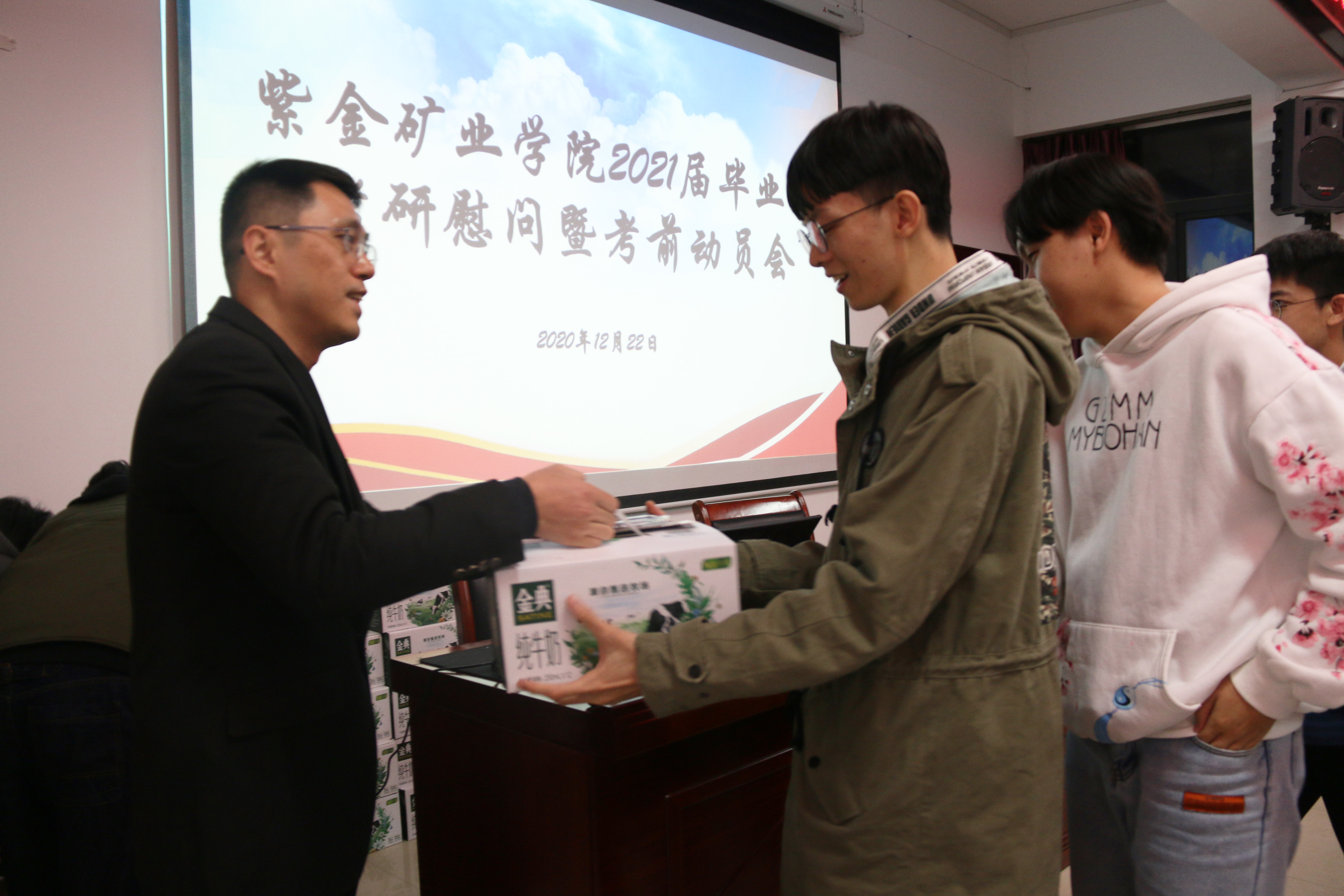 值得一提的是,本次考研动员会还为考研的同学们分发了考研所需的文具,并赠送牛奶等营养品助力同学们考研成功,展现出成人影视领导老师对同学们备战考研的重视与关怀。