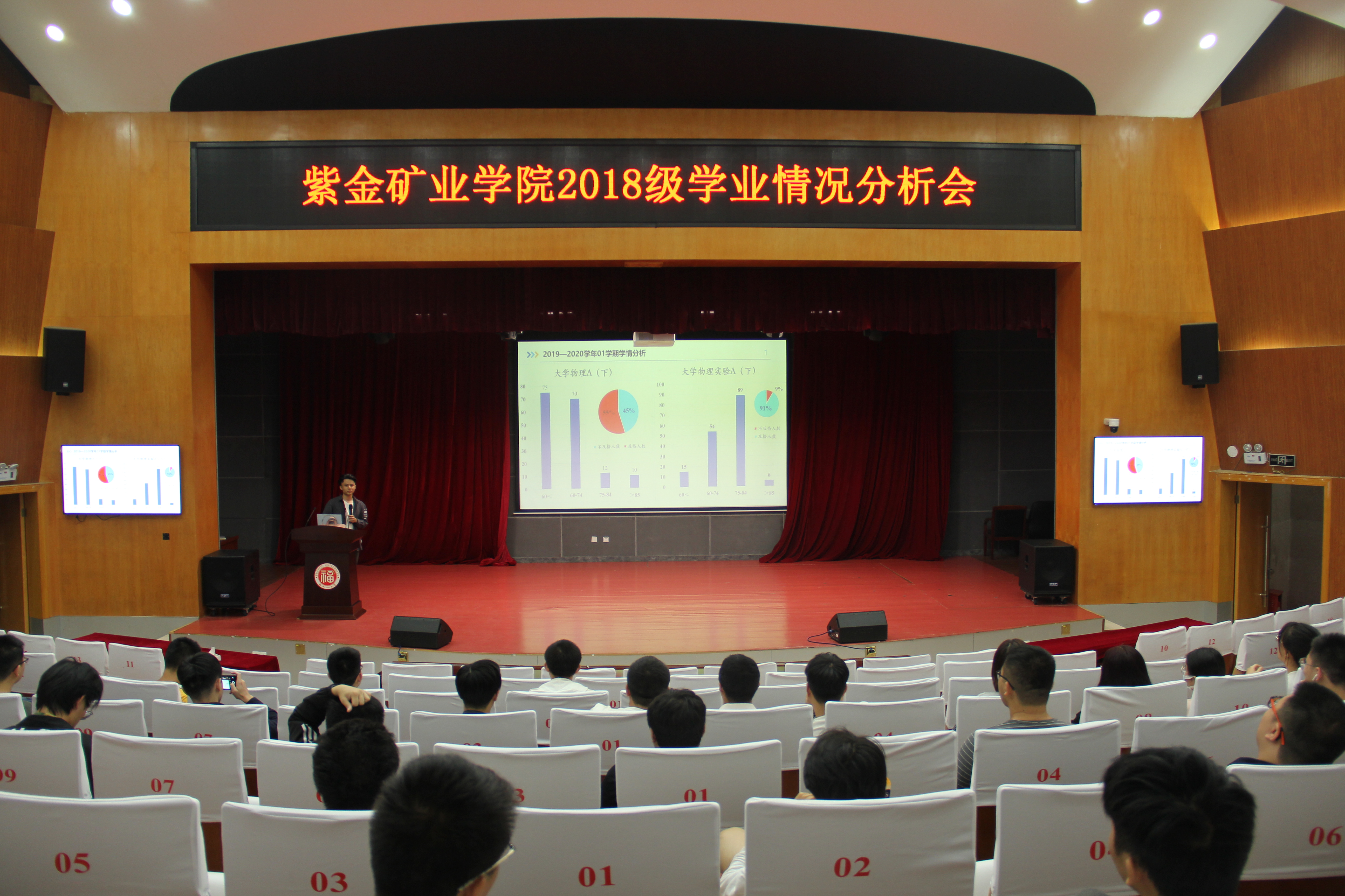 会议伊始,李老师向同学们讲述了确立人生目标、做好未来规划的重要性,还提醒同学们要不断努力学习,顺利完成后面两年的大学生活,并寻找自己将来发展的方向,做好规划和准备工作,不给自己留下遗憾。随后,吴晓林老师老师向同学们展示了近三年来的年段总体学习情况的大数据,着重分析了大学物理、高等数学、线性代数及概率论等多门课程的成绩分布情况,同时针对各个专业的不同侧重点,对同学们的学业重点提出了针对性的意见。