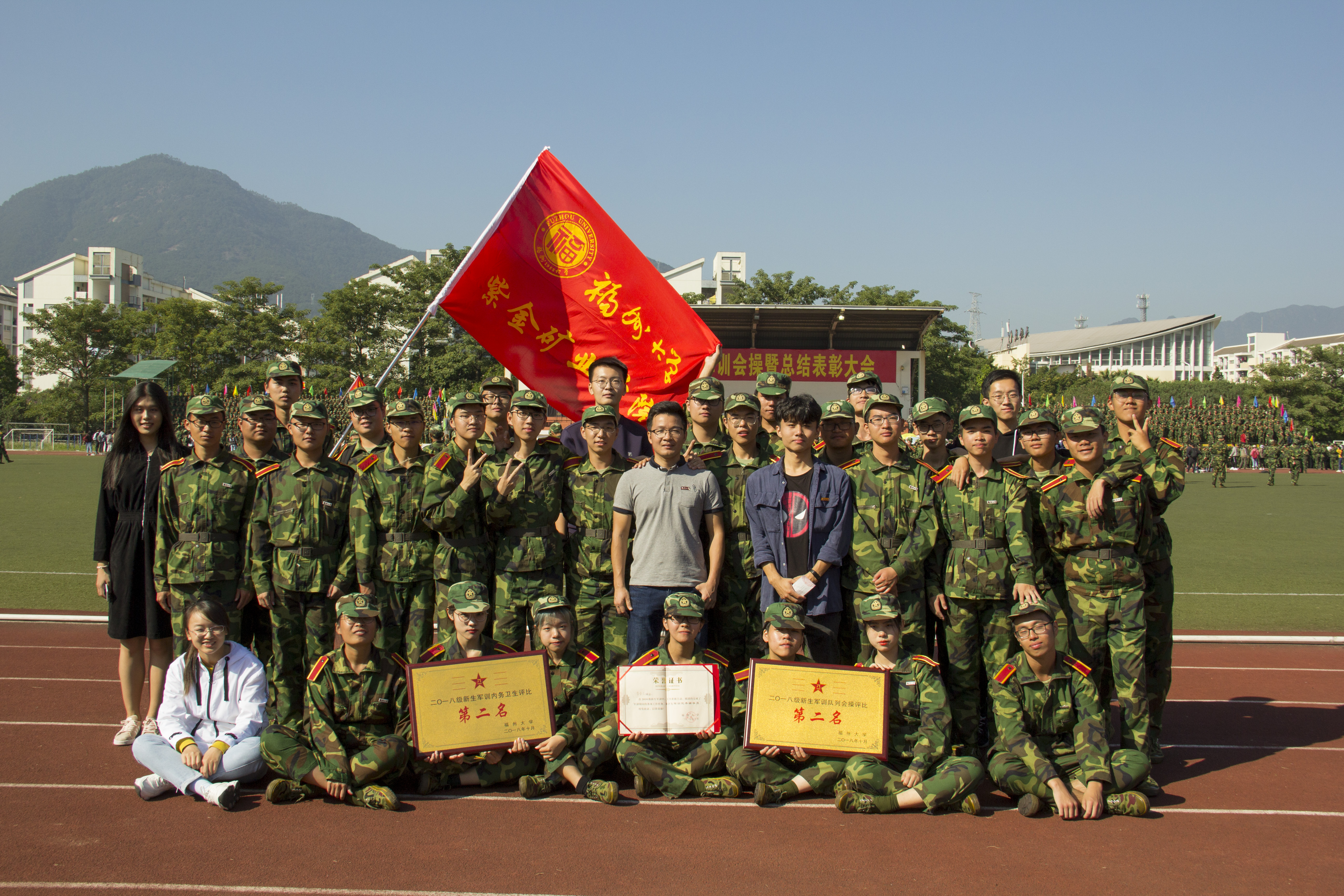 10月28日上午,成人影视 2018级新生军训会操暨总结表彰大会在一区操场隆重举行。伴随着雄壮的进行曲,成人影视101名精神抖擞、朝气蓬勃的同学踏上了跑道,他们以整齐划一的步伐、响亮的口号彰显了紫金人敢闯敢拼的精神面貌,赢得了全场的掌声。最后,成人影视荣获2018级新生军训内务卫生第二名,2018级军训会操第二名,总成绩创历史新高。此外,成人影视2018级辅导员李金土荣获优秀军训辅导员荣誉称号。