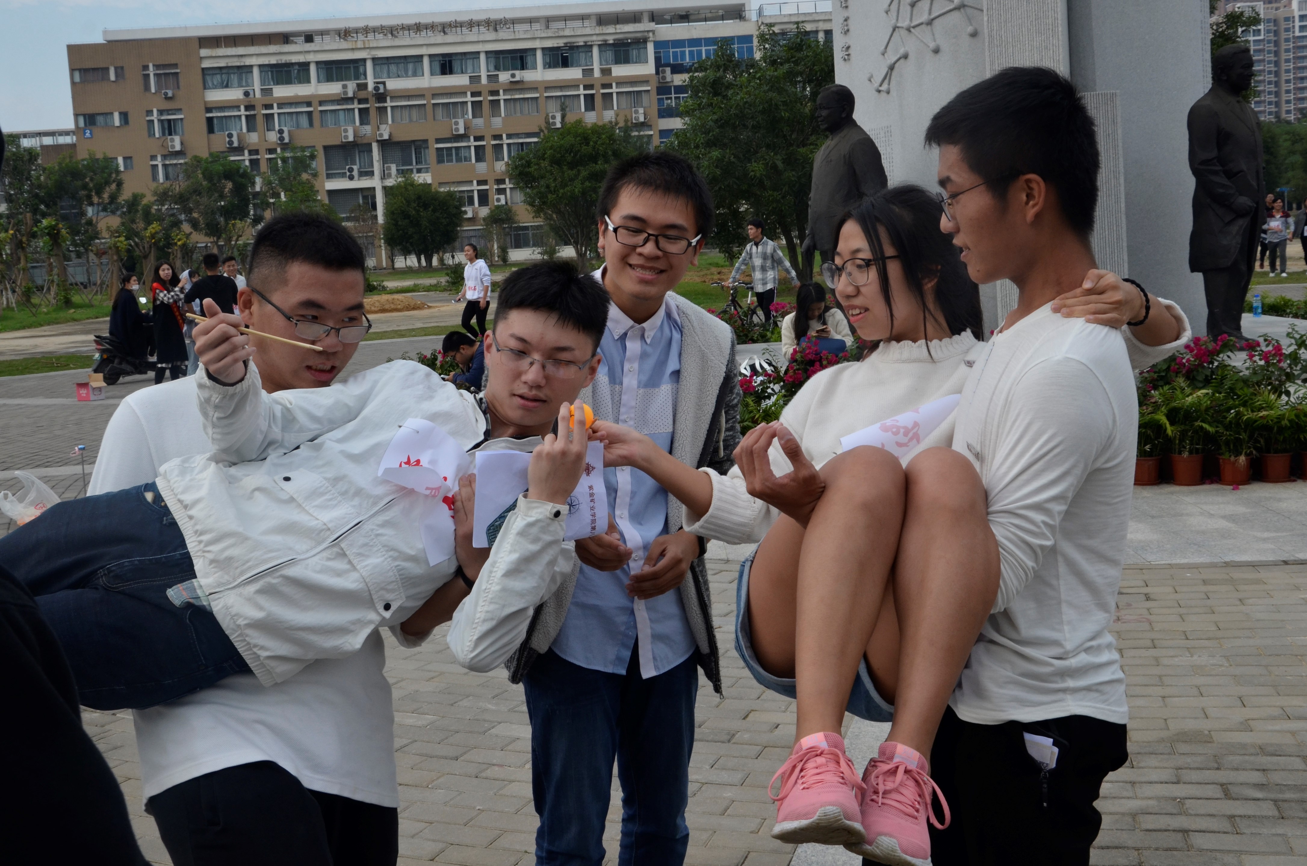 主持人介绍本次大赛的规则以及相关事项,随后李金土老师宣布比赛开幕。随着比赛号令发起,11支参赛队伍从起跑线出发。本次比赛要求各队根据地图和GPS定位仪寻找相应坐标点,并通过搜集到的任务卡前往指定地点参与运动项目及趣味游戏,完成活动所定路线后根据比赛时长及完成度确定比赛结果。经过两个小时的比拼,最终“胡克绿”队荣获一等奖,“方硼石”队和“碧玺”队活动二等奖,“钻石”、“绿松石”和“海蓝宝石”队获得三等奖。