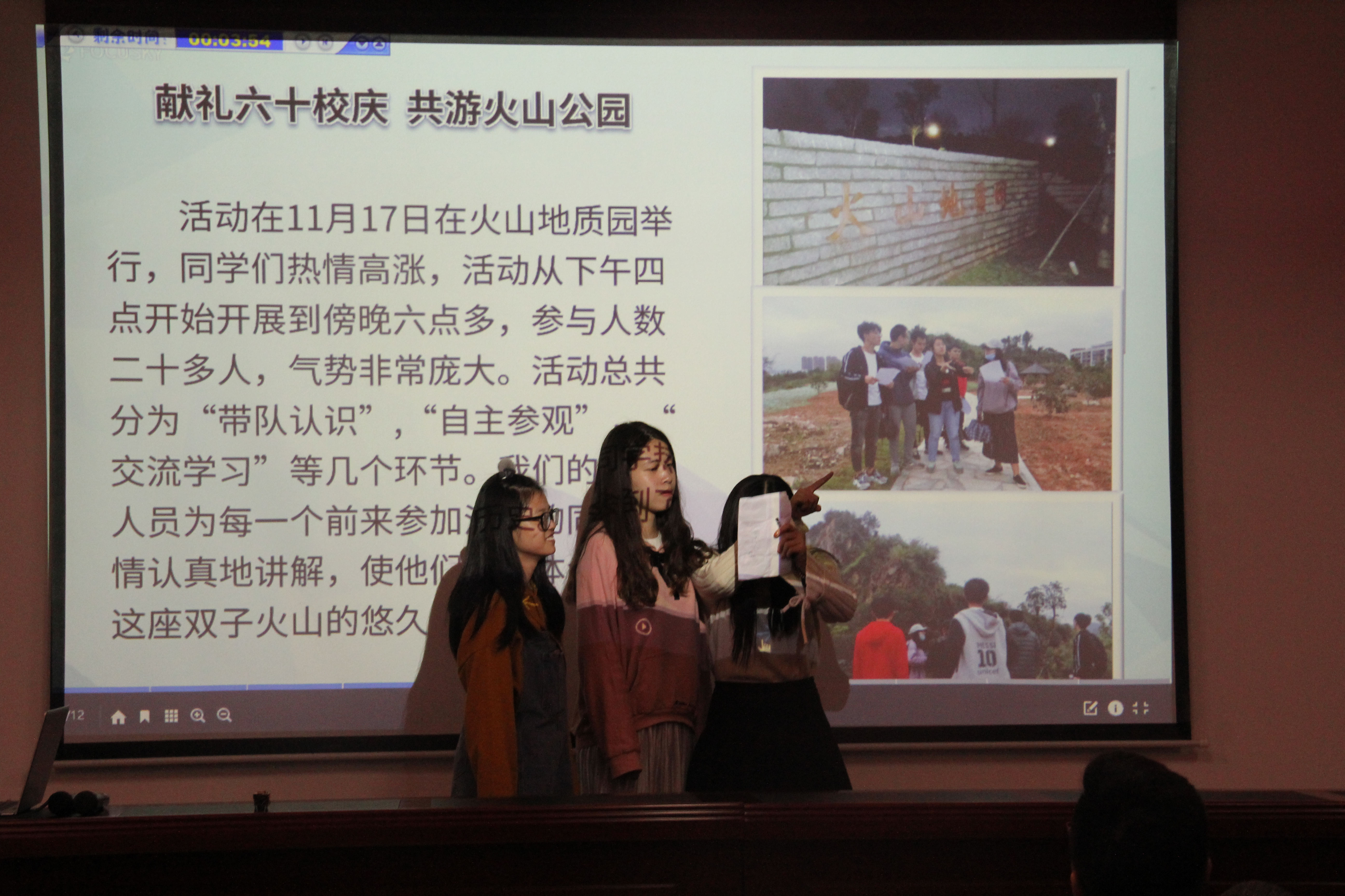 11月30日,成人影视在紫金楼304举办了以"砥砺追梦一甲子,青年学习谱华章"为主题的团立项风采展。出席本次活动的老师有院团委书记李金土、2016、2017级辅导员翁惠玲、兼职辅导员韩雪靖、吴晓林,以及各团支部的成员。