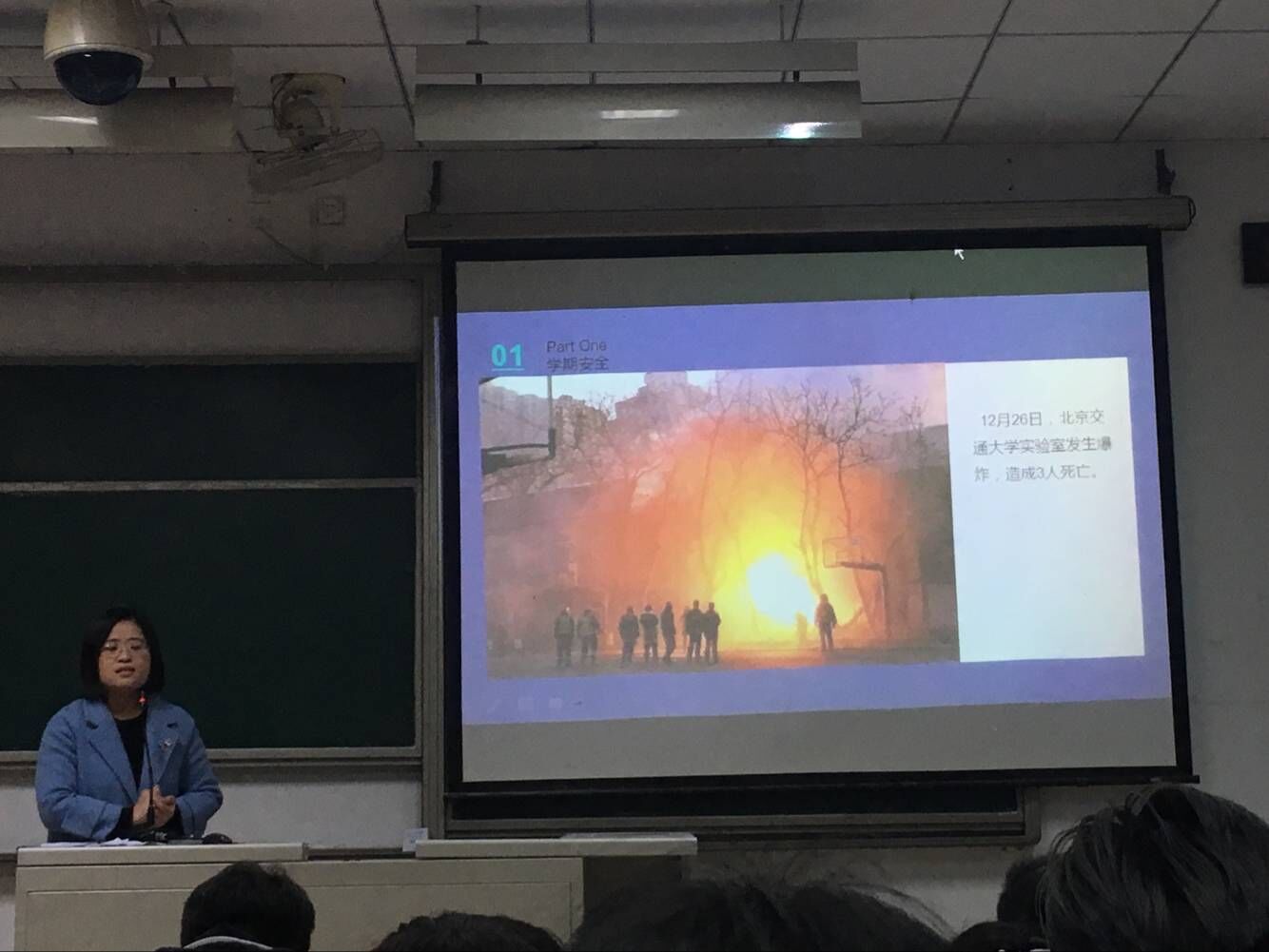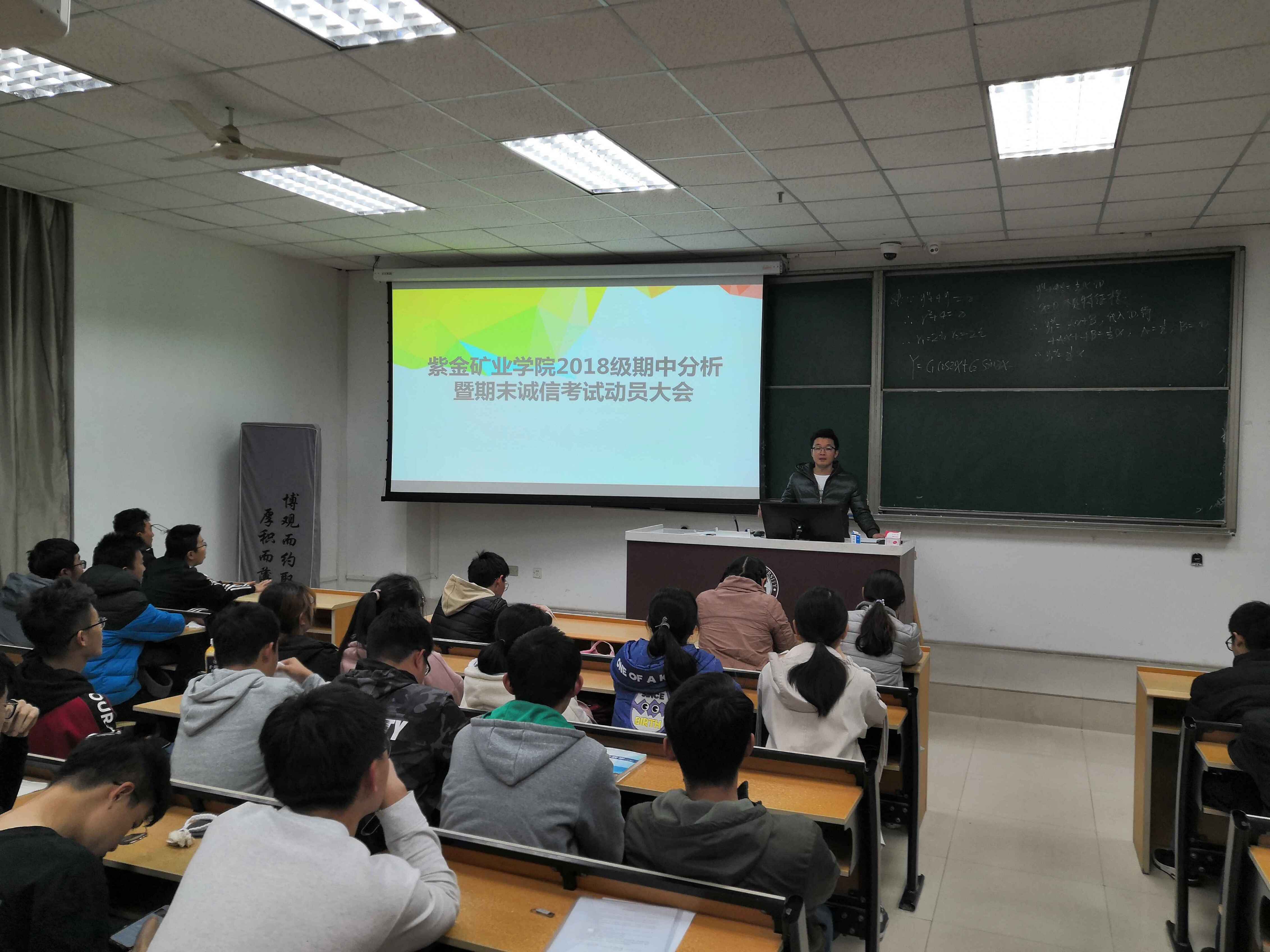 会上,吴晓林老师首先对2018级的高数半期考情况进行简要分析,希望同学们及时调整学习状态、制定期末复习计划、争取在期末考试中取得好成绩。之后,李金土老师向同学们发起了诚信考试的倡议,希望同学们端正学习态度,并说明了考试作弊的危害和严重性,倡导同学诚信考试,考出真实水平。最后,李金土老师提醒学生元旦期间要注意保护好个人人身安全、财产安全,谨防电信、网络诈骗,平安愉快地度过元旦假期。
