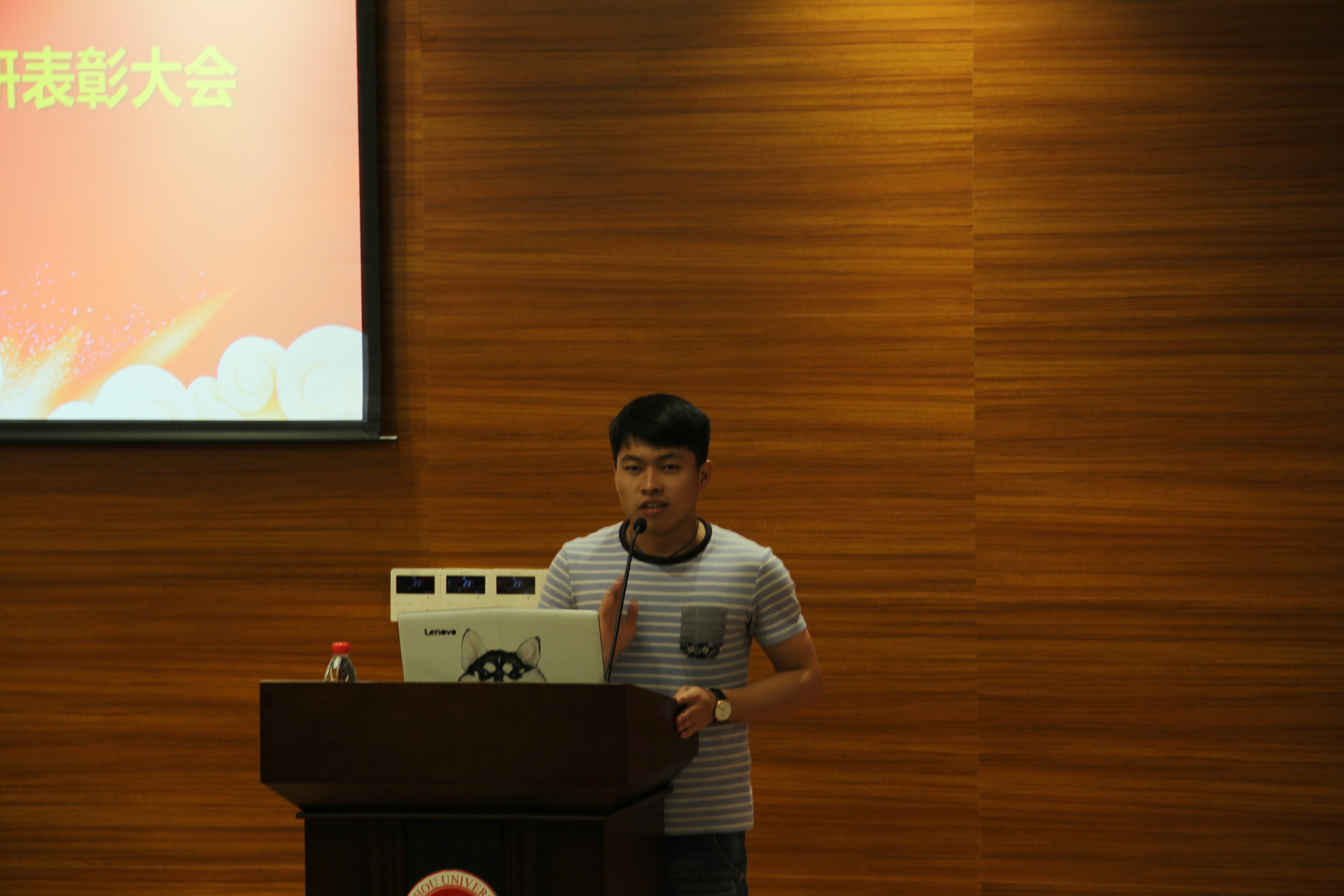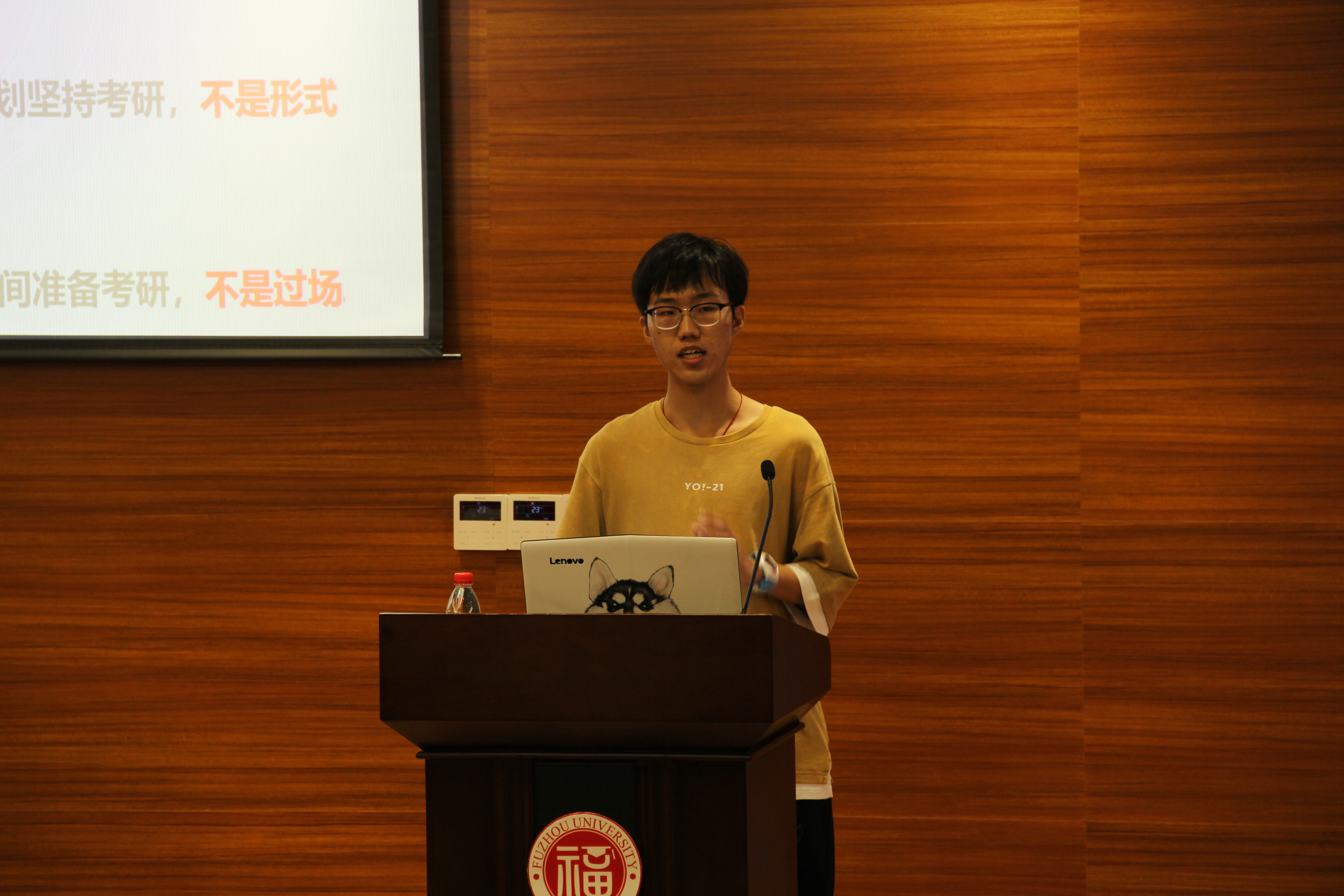 伴随着威武雄壮的国歌声,大会正式开始。院长助理左蔚然教授宣读表彰决定,台上的领导为考研先进集体及个人颁奖。随后,各专业考研学生代表上台做交流发言,他们分别介绍了考研道路上的经历,分享了考研的学习方法,鼓励学弟学妹们坚定考研信念,相信自己,不惧困难。最后,由副院长黎敦朋教授做动员讲话,黎院长从国家发展、个人成长和考研总体趋势三个维度为同学们分析了考研升学的重要意义,并鼓励同学们积极报考本校研究生。