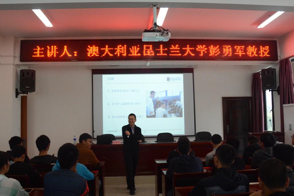 报告会上,彭教授首先讲述了自己的矿业生涯:在大学期间就读于武汉理工大学,面对亲友的反对意见,他坚定地选择了矿物加工专业,因为他相信只要付出足够的努力,无论学习哪门专业都会出成绩。之后,彭教授与在座的同学们分享了自己成功的经验,刚到国外时,面临语言的障碍和工作经验不足等困难,他通过自己的不懈努力最终取得了成功。彭教授说到,要根据自身的特点,走自己的路,不要盲从。