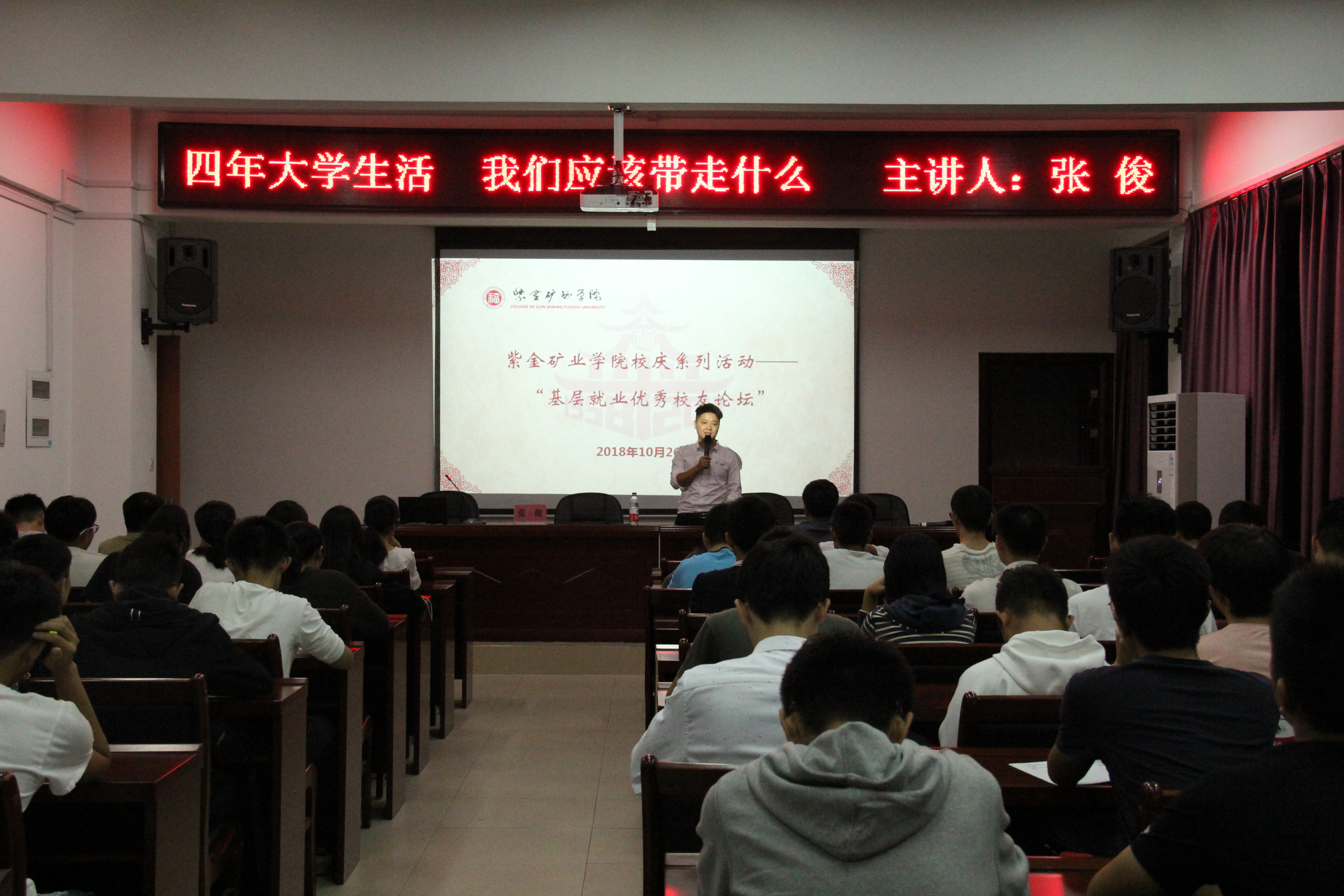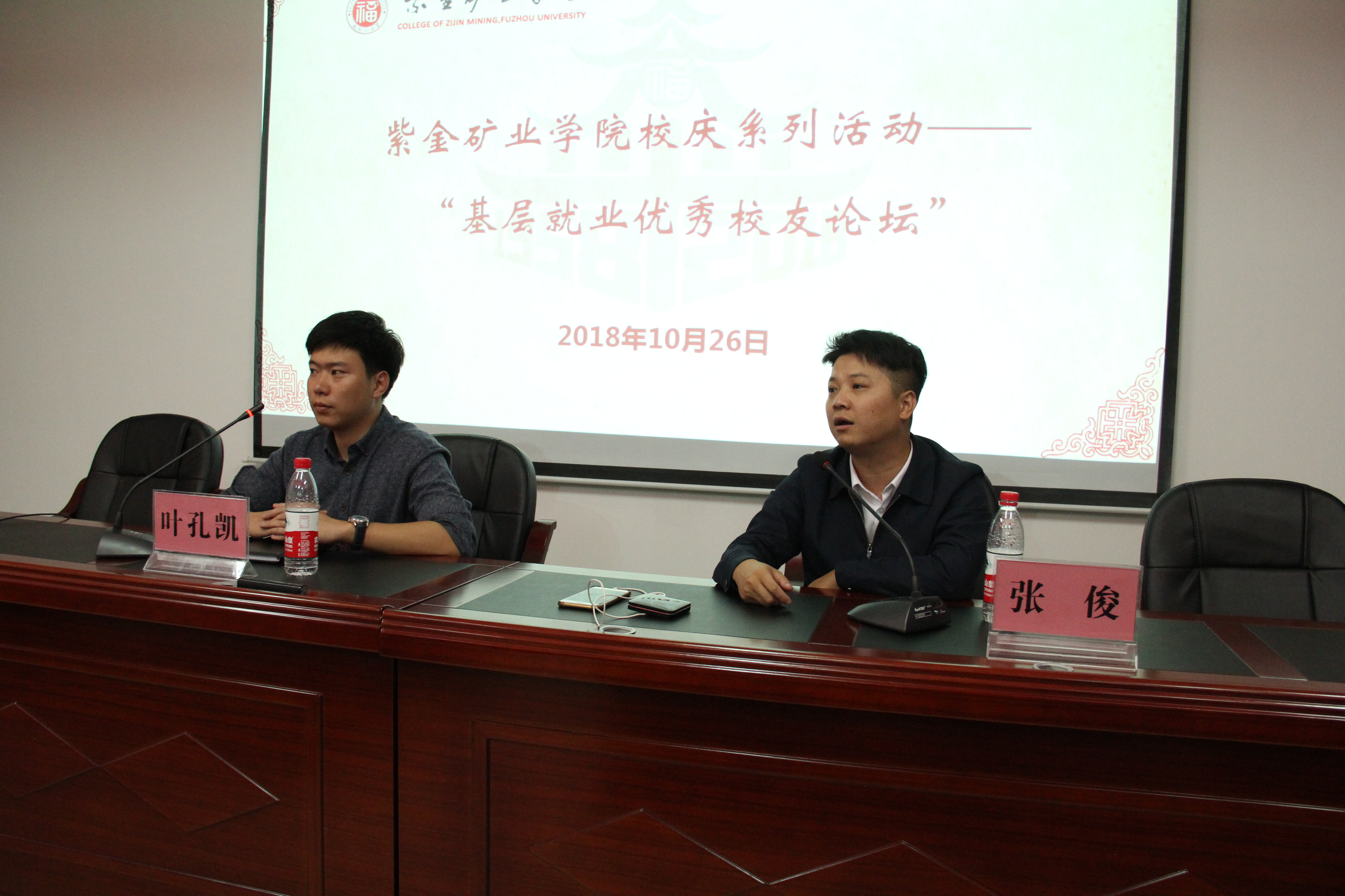 论坛中,张俊以《四年大学生活,我们应该带走什么》为主题向大家讲述他的大学经历和步入社会后面临的抉择。叶孔凯主要讲述地质专业的相关问题,并以《地勘行业现状和发展方向》为题,探讨作为地质工作的前景与方向。论坛结束后,张俊和叶孔凯就大学生最为关注的专业与未来工作问题和学生展开交流讨论,现场反响热烈。