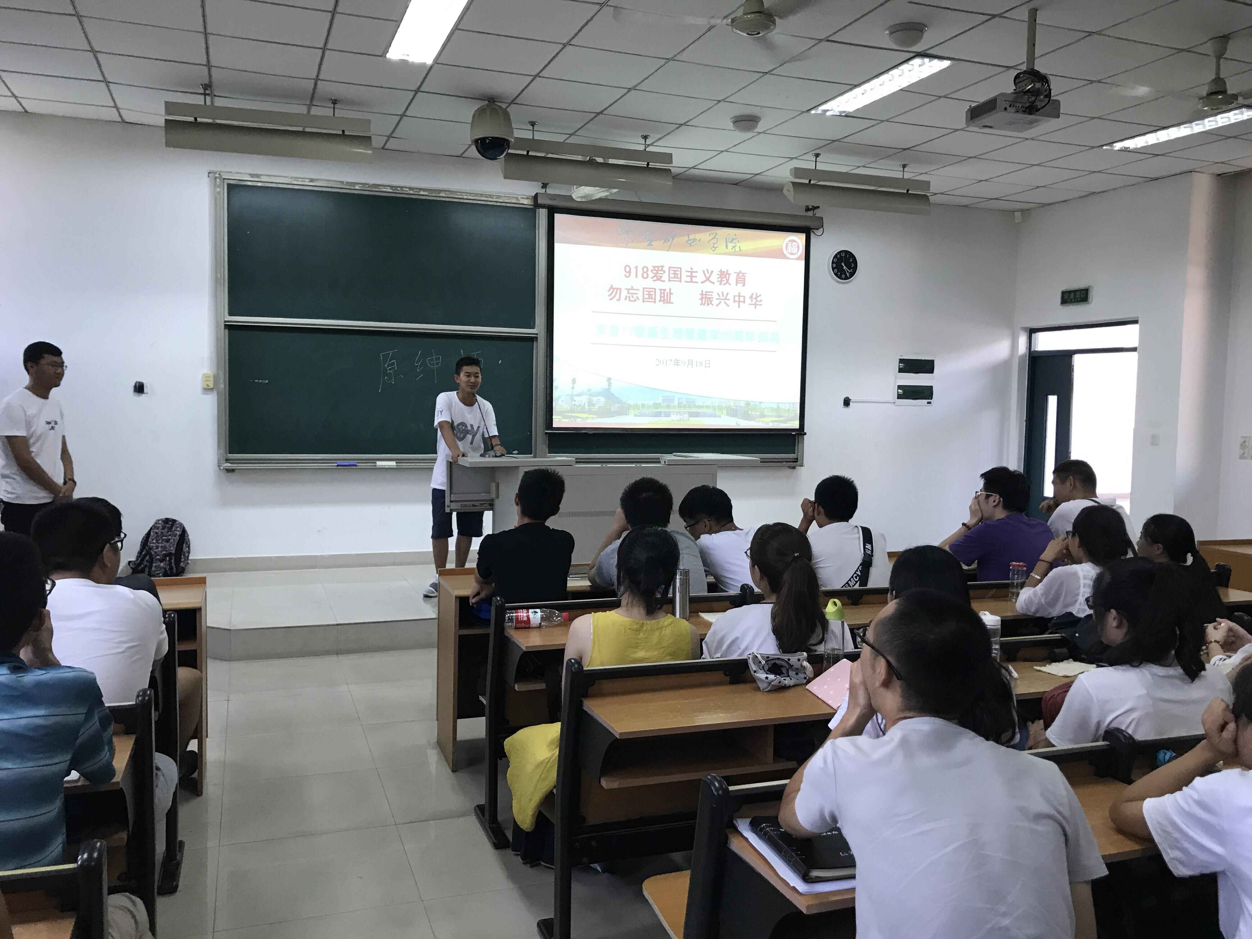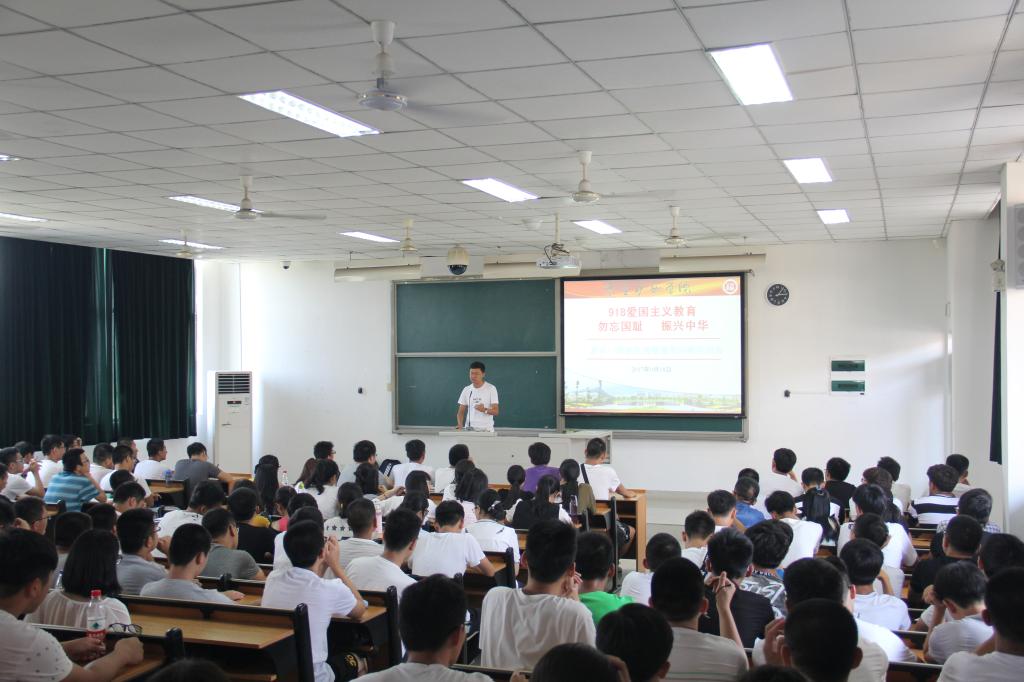 首先,在2017级新生辅导员张多阳老师通过与学生互动谈话的方式,让同学们了解了“九一八事变”的真相极大地激发了同学们的责任感和爱国热情。大家纷纷表示会不忘国耻,奋发图强,为中华之崛起而努力。接着,同学们观看了《建军90周年阅兵仪式》视频,通过视频感受到祖国的繁荣强大,并纷纷表示继承先烈们敢于担负天下责任的勇气,不忘九一八,发奋图强,振兴中华。最后,新生代表们争先恐后上台发言。新生代表张诗童说到道:“抚今追昔,今天的和平生活来之不易,应该倍加珍惜。我们一刻也不能忘记历史的深刻昭示,一刻也不能忘记时代赋予的庄严使命。”