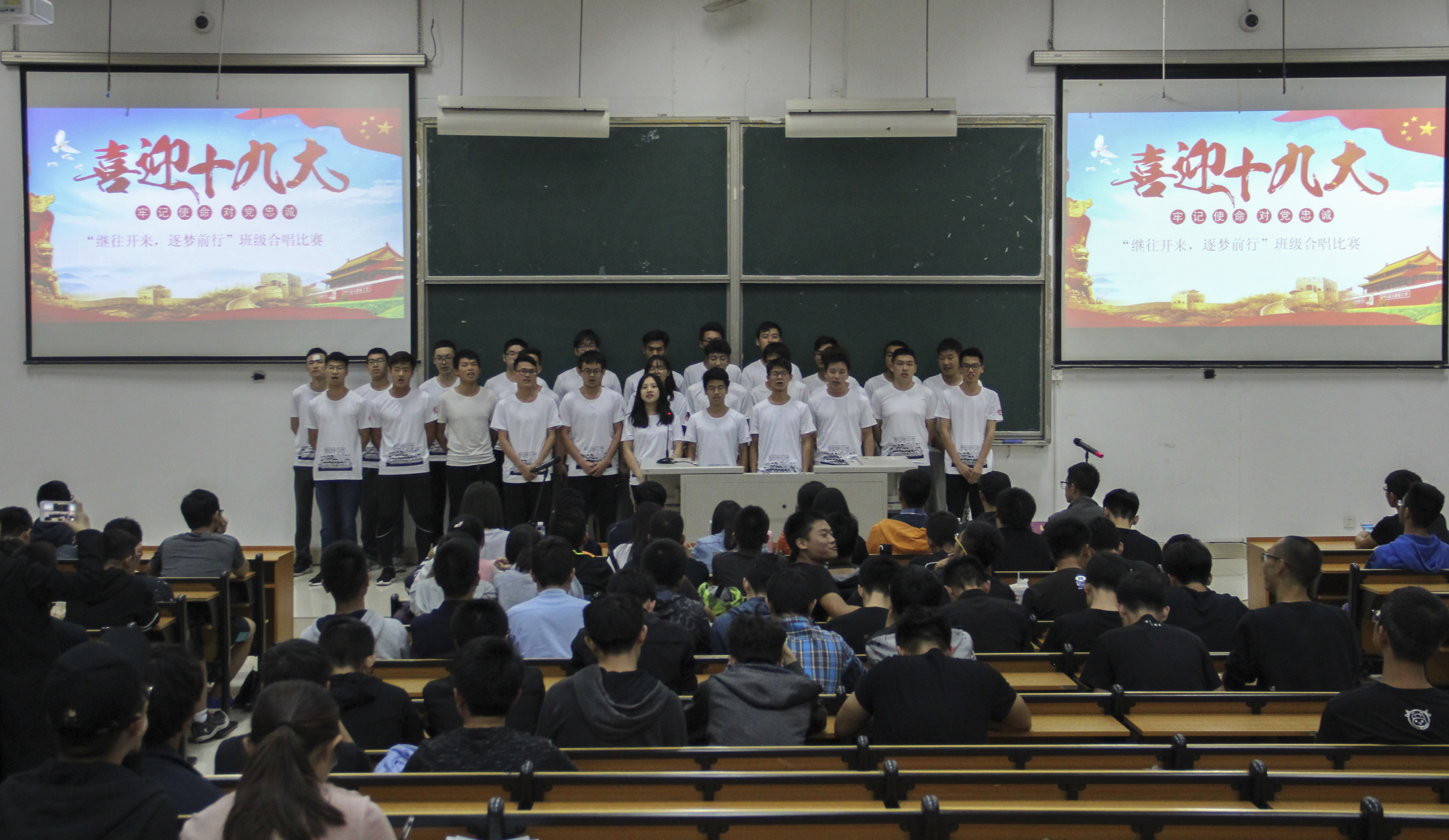 这次比赛共有2016级、2017级的十二个班级参与,每个班级皆以“十九大精神”为主题展开,谱写了一首首美丽的家国梦。各个班级按续依次上台展现他们的班级风貌,2017级矿物加工工程二班的《骄傲的少年》为我们唱出了青春的风采与努力的拼劲他们清澈的歌声是本次比赛中的一抹亮色。最后,2017级矿加工程一班表演的《国家》勇夺桂冠,他们积极向上的风貌与热切深沉的爱国情融在朗朗的歌声中,为我们呈现了一场视听盛宴,获得了在场评委和观众的一致认可。