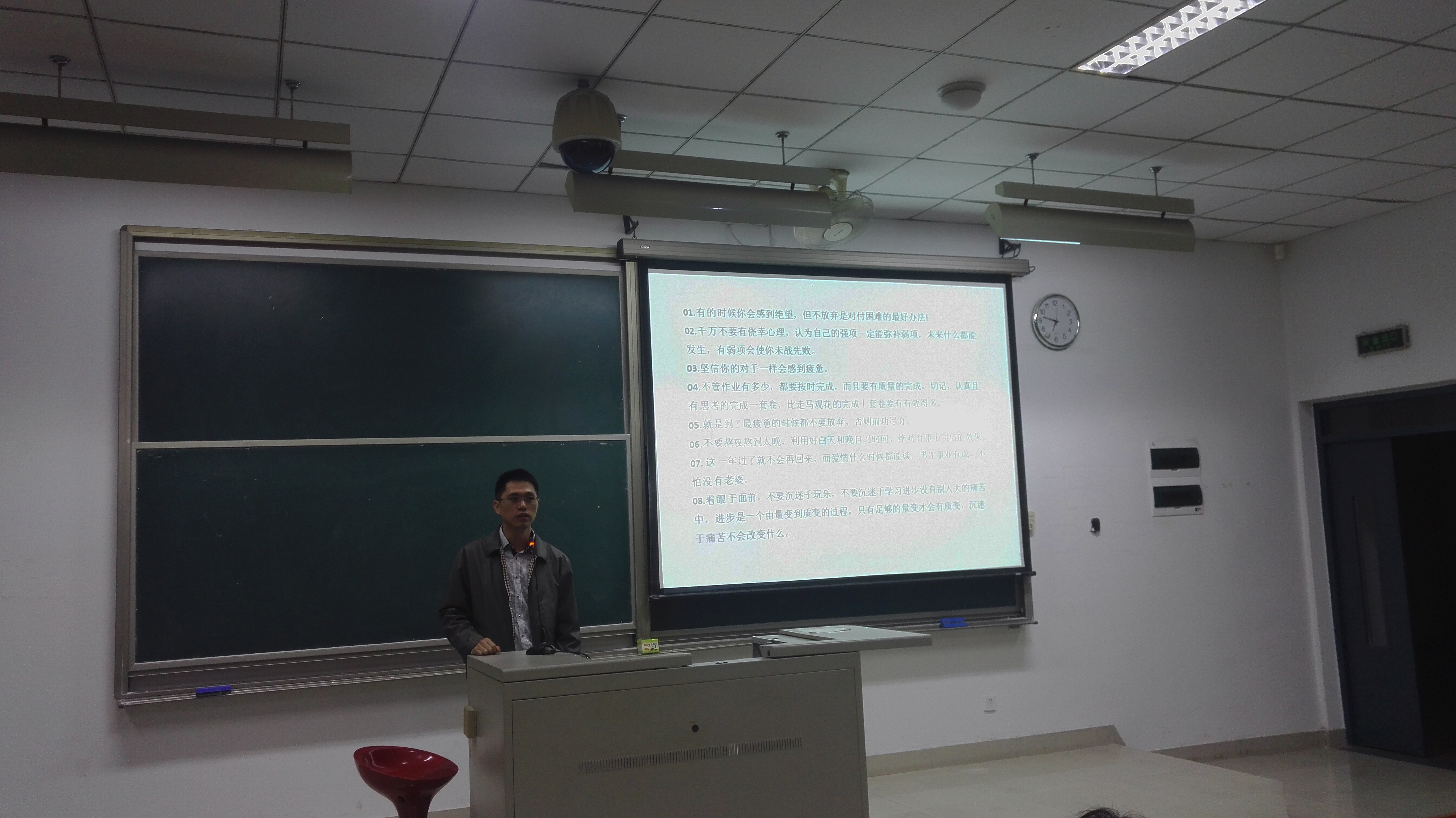 会上,郑寿副书记首先做了考研动员,郑寿副书记回顾了2017届毕业班的考研、就业形势,通报了2018届考研的报名情况。他表示学院领导和老师高度重视成人影视学生的就业和考研工作,并提出了几点建议:一是不忘初心,保持当时高中努力学习的姿态,完成大一进校时制定的计划。二是引导同学们认清当前的形势,结合自身实际,设定考研目标。三是不畏困难,掌握方法,保持良好的心态。最后,郑寿副书记提醒同学们留意天气变化,注意身体健康。