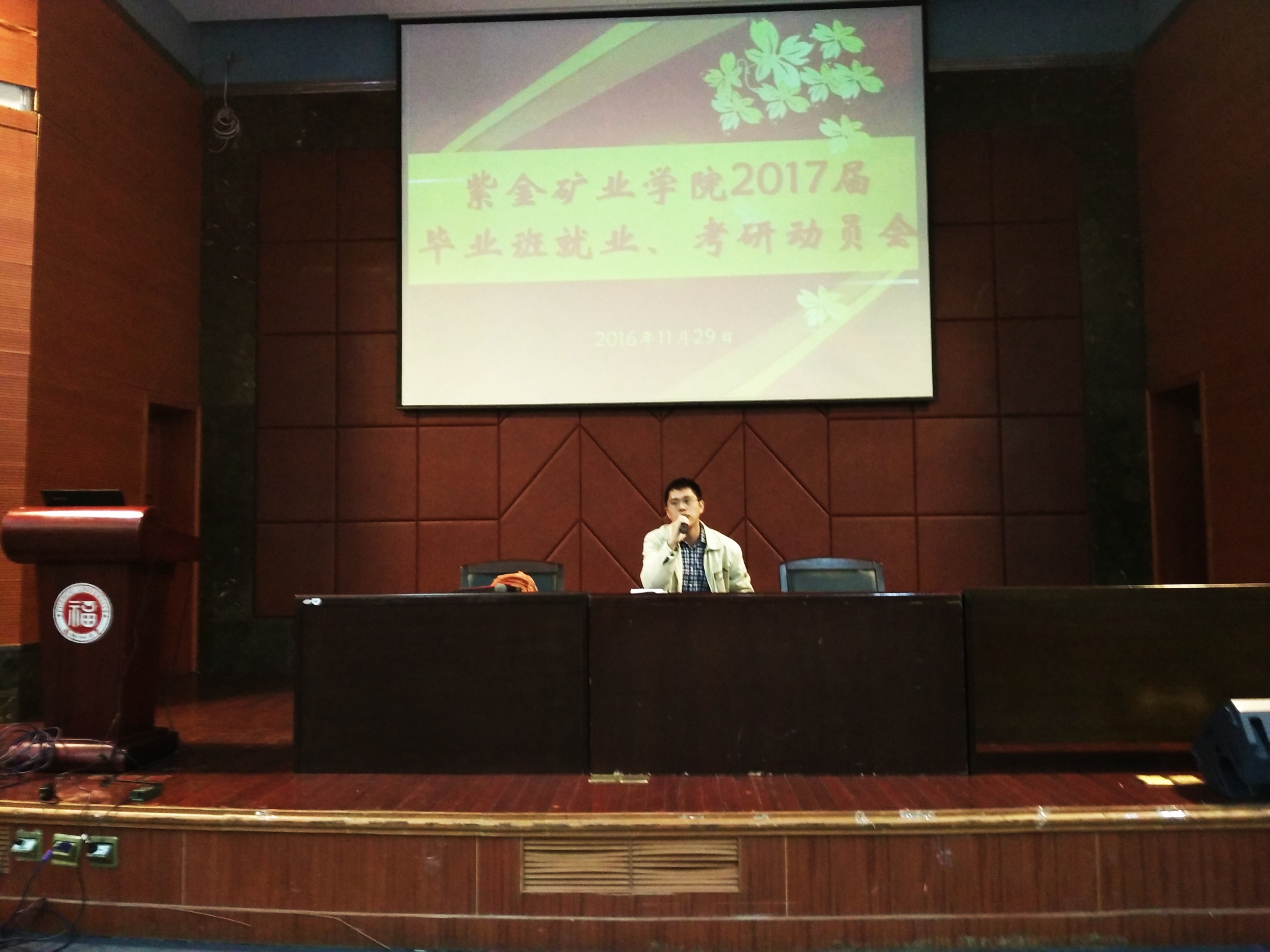 2016年11月29日下午18:00,成人影视在嘉锡厅召开2017届毕业生就业、考研动员会。院党委郑寿副书记做毕业班就业、考研动员。成人影视2017届全体本科毕业生参加动员会。会议由2017届毕业班辅导员范新垲老师主持。
