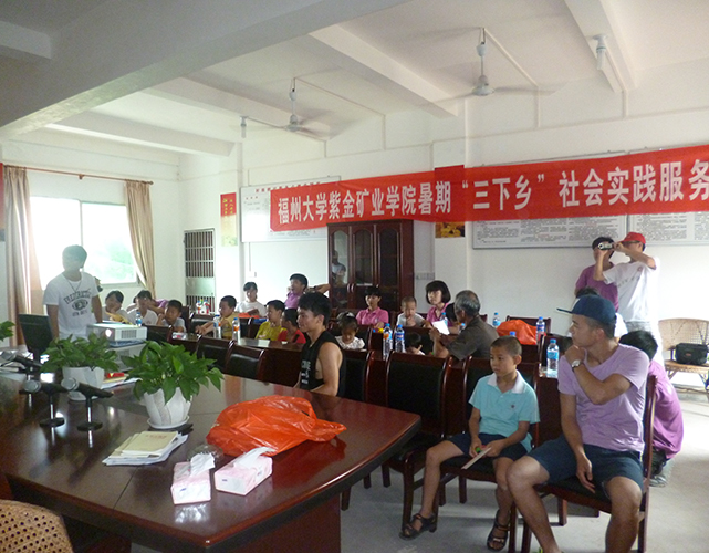 2014年7月13日,紫金矿业学院“共筑生态梦 同建绿色城”暑期社会实践队继续驻守龙岩上杭紫金矿业学院教学基地,开展环保常识进乡村系列活动。在前几天下乡经验的基础上,乘车前往上杭白玉村,进行实地调研。 早上,乘车前往白玉村。来到村委会,一群活泼可爱的孩子早已端坐在村委会办公室,和他们的家长一起等待实践队的到来。顾不上休息,队员们自觉将所需物品整理好,开始“环保知识课堂”的讲解。一页页精美的PPT吸引着孩子们的目光,一幅幅美丽的图片让小朋友们有些惊叹,一帧帧形象的视频让每一个人都不禁将环保知识印在脑海。随后,实践队员们带领小朋友们来到村委会大院,开展“环保百米画卷”活动和手工艺品的制作。可爱的小朋友们尽情发挥想象力,在实践队员们的帮助下,将他们眼中的环保挥洒在画卷上。虽显稚嫩,却是儿童眼中的保护环境。接过实践队赠送的环保购物袋,家长们也赞不绝口,纷纷表示将强化自己的保护环境意识,不乱丢垃圾。午饭过后,实践队来到村庄中,一边做问卷调查和环保宣传单的发放,一边实地考察村落生态环境。队员们发现白玉村整体自然环境较好,村民们保护环境意识很强。 通过最后一天的实践调研,队员们充分了解到农村生态环境的现状和村民保护环境的理念和常识,并且与前期调研活动形成呼应,取得良好成效。(成人影视 紫金矿业学院暑期社会实践队 供稿)