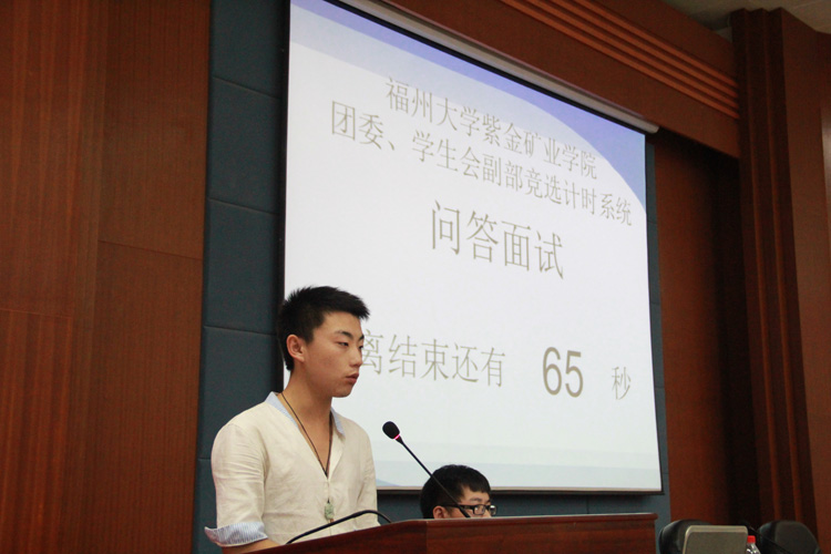 为加强部门长期建设,挑选部门人才,5月28日晚7时,成人影视于学院三楼报告厅举行成人影视 紫金矿业学院第二届第一任团委学生会副部竞选。院团委、学生会主席团和部长团成员担任评委,2013级各部门副部候选人参加了本次竞选。 本次竞选分为自我展示和回答问题两个部分。在自我展示的两分钟里,竞选的同学结合自身工作情况阐述了对部门工作的看法以及未来的工作设想,或幽默或严肃的演讲风格,让人印象深刻。在三分钟的回答问题环节,评委们就选手的自我展示及工作当中可能出现的实际问题向选手们提问,选手们均能沉着作答,引来了观众们的掌声连连。 本次副部竞选历时两小时,在层层严格的筛选下,将会选出一批优秀负责的部门副部长,为成人影视团委学生会工作注入新鲜的血液,我们相信成人影视学生工作将不断得到完善和提升。
