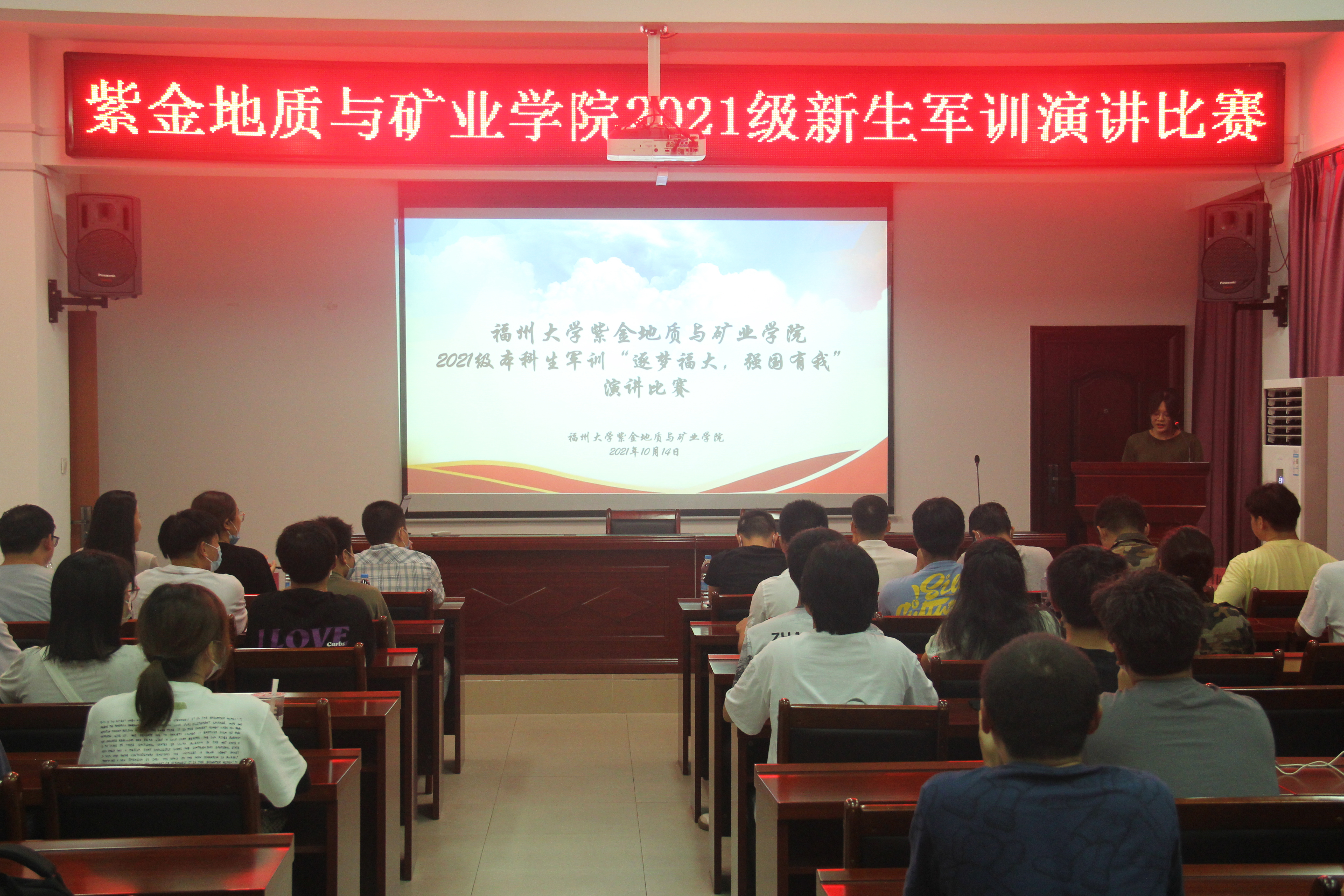 10月14日19:00,成人影视2021级本科生军训“逐梦福大,强国有我”演讲比赛于紫金楼304会议室顺利举办。班导师张建智、赵宇松,辅导员谢仁栩、陈佳敏,兼职辅导员陈诗伟,校演讲比赛冠军张梦灵出席本次活动并担任评委,本次比赛共有12名2021级新生参加。