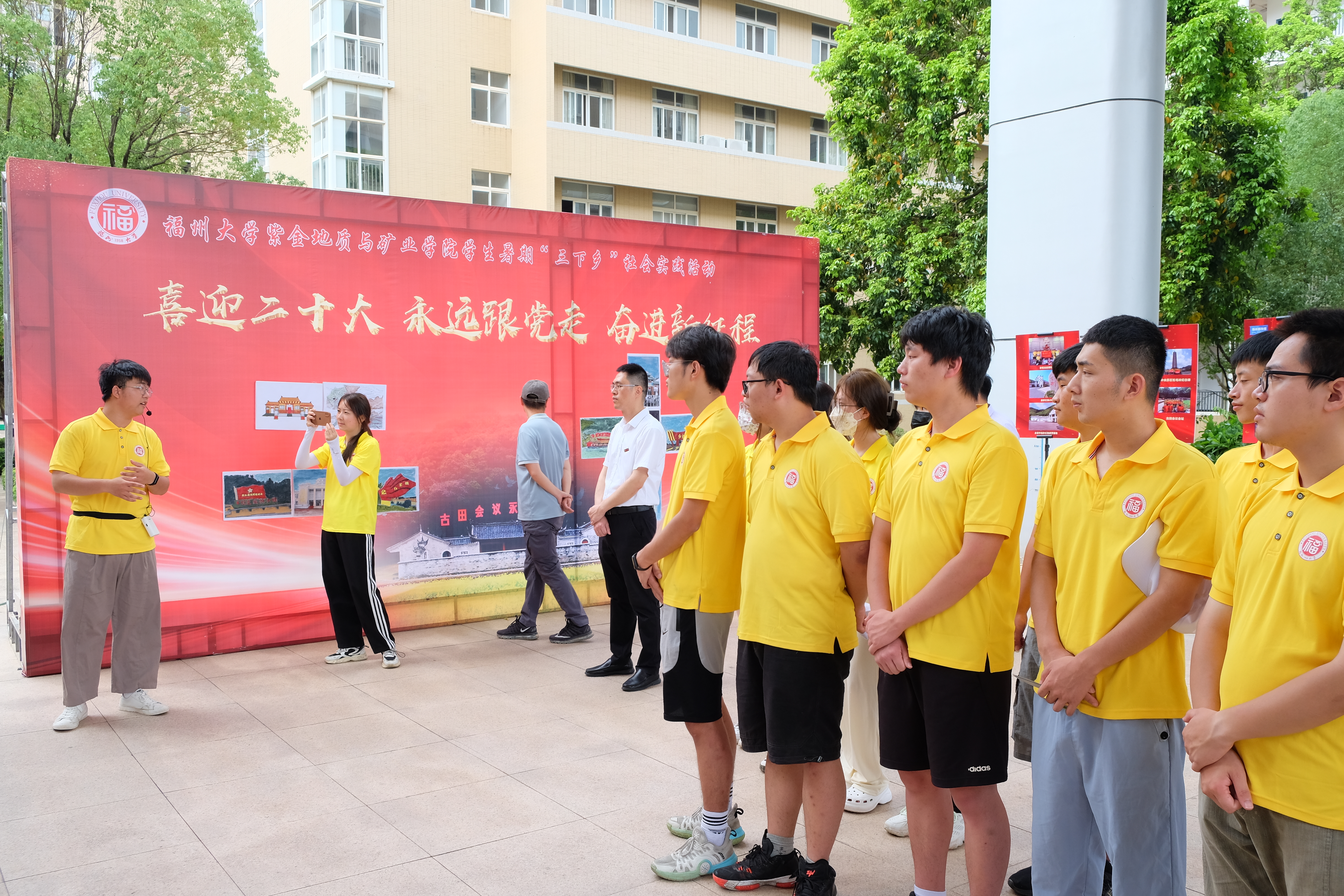 最后,郑寿副书记对实践队能够发挥上杭实践基地优势,依托龙岩丰富的红色资源和地质资源开展学生社会实践活动,为赓续红色精神、为革命老区地质工作作出的积极贡献表示肯定。他向同学们提出了三点希望:要坚定理想信念,传承红色精神;要自觉自觉担当尽责,发挥专业所长;要转化实践收获,锤炼过硬本领。他指出,“三下乡”并非短暂性的活动,要持续跟踪,把实践活动持续做好做实。