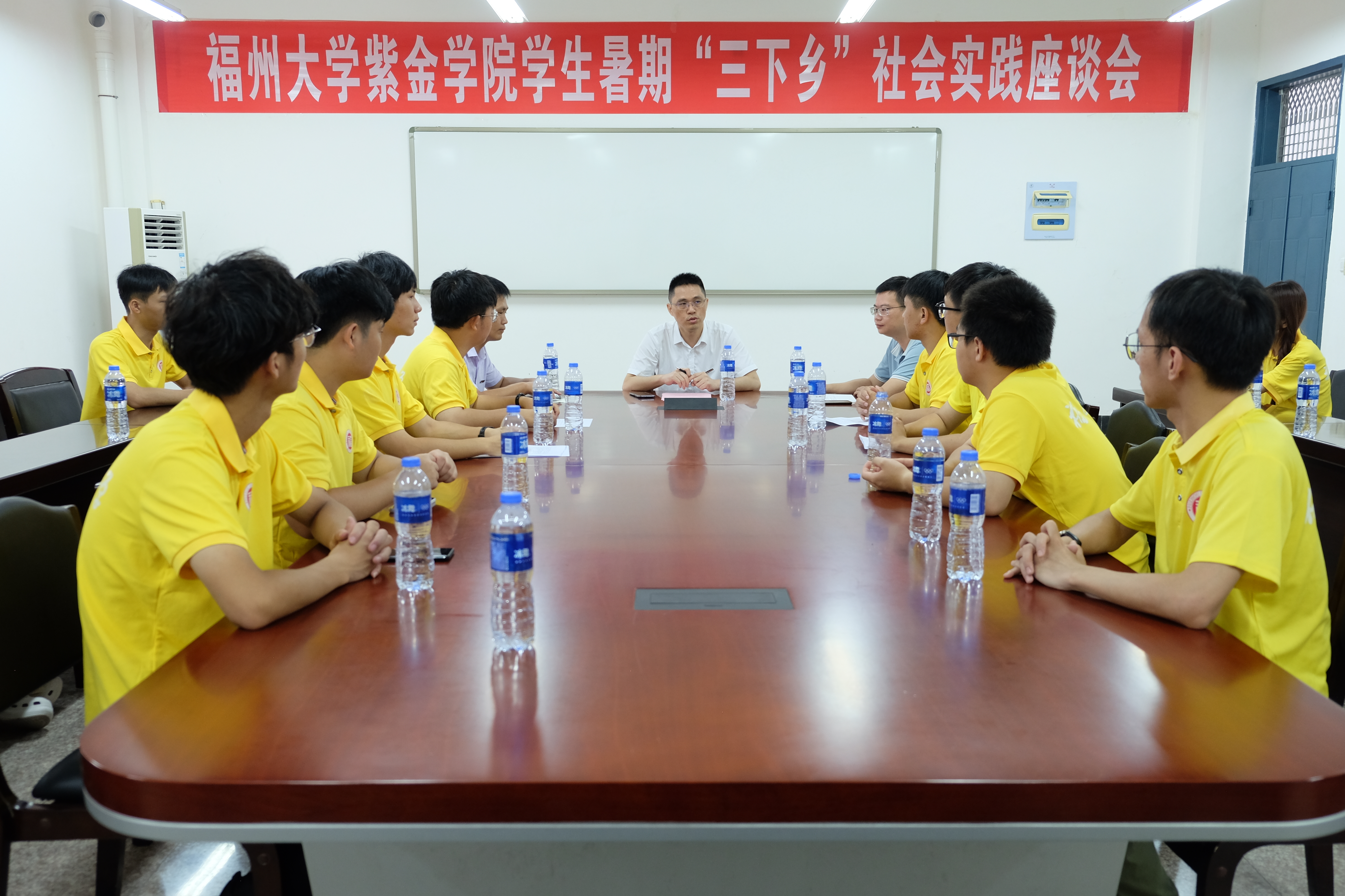 7月16日上午,成人影视 学生暑期“三下乡”社会实践阶段性总结座谈会在上杭实践基地召开。院党委郑寿副书记参加会议,参会的还有实践队带队老师林木森博士、欧国庆老师,以及龙岩实践队全体成员。座谈会前,郑寿副书记听取了实践队成果展出汇报。