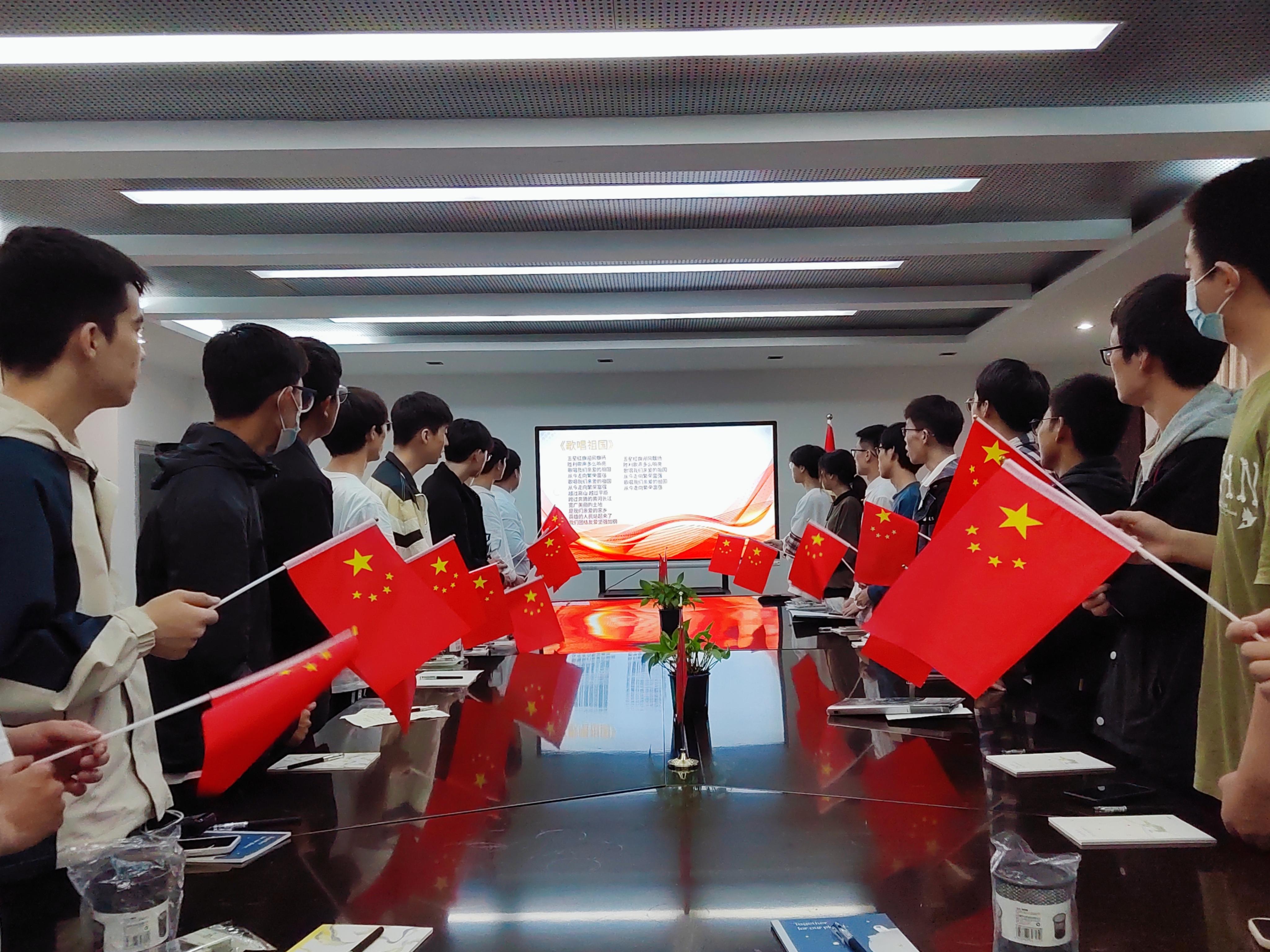 接着,全体与会成员起立并举起手中的小国旗,慷慨激昂共同《歌唱祖国》,本次座谈会圆满落幕。