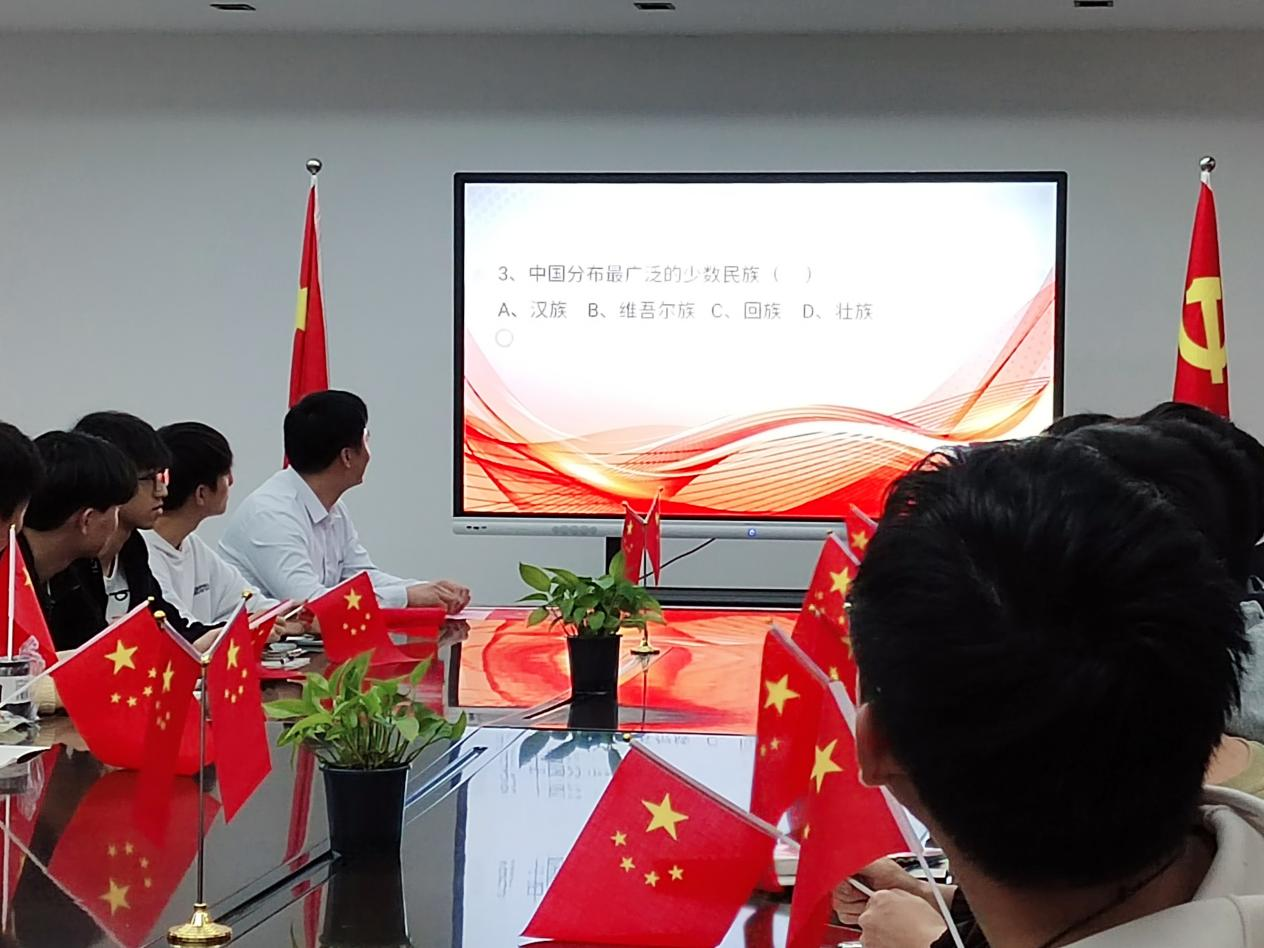 座谈会期间穿插了三轮民族知识抢答竞赛,回答正确的同学领取了奖品并为大家讲解了题目相关内容,进行了少数民族知识科普。在题目的牵引下,同学们更加深入地了解各民族传统风情文化,营造了愉快的氛围。