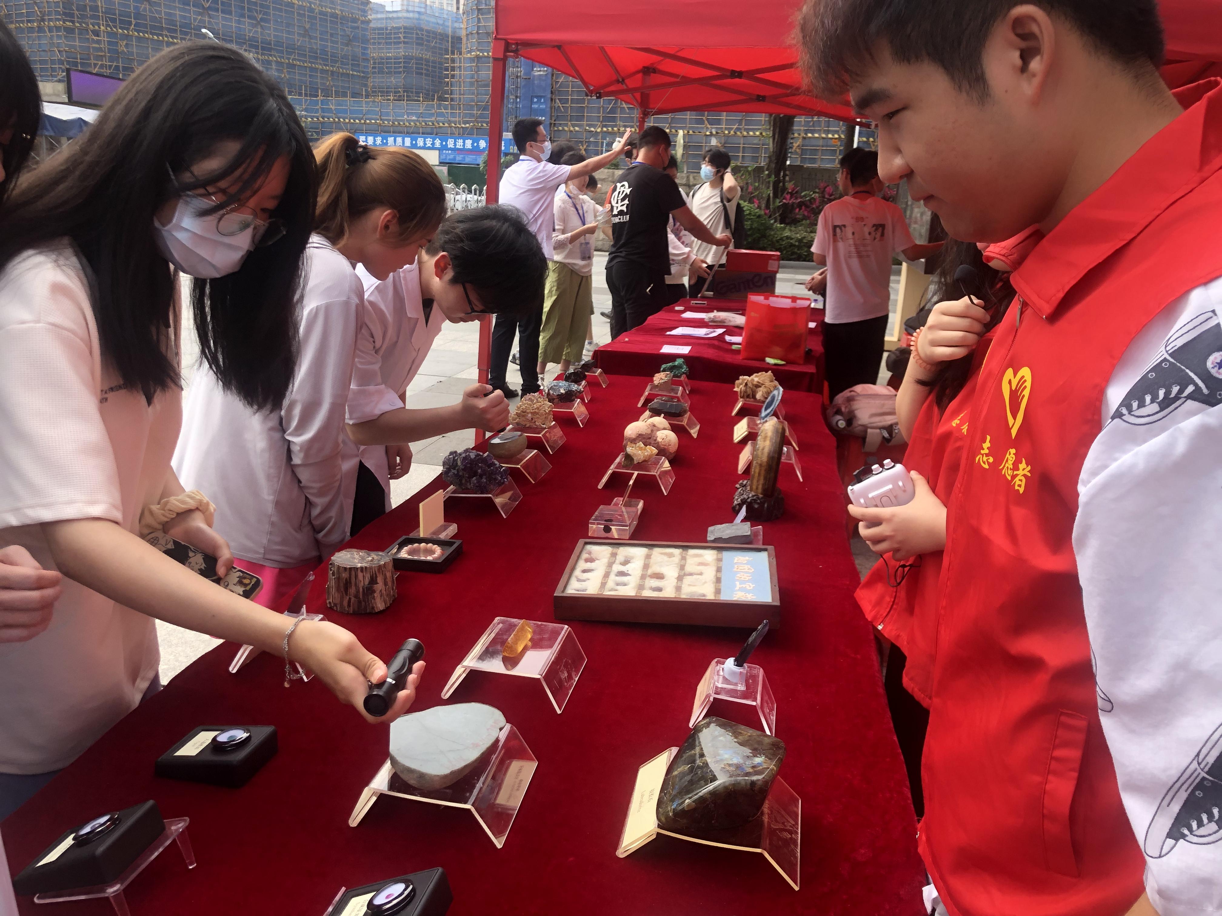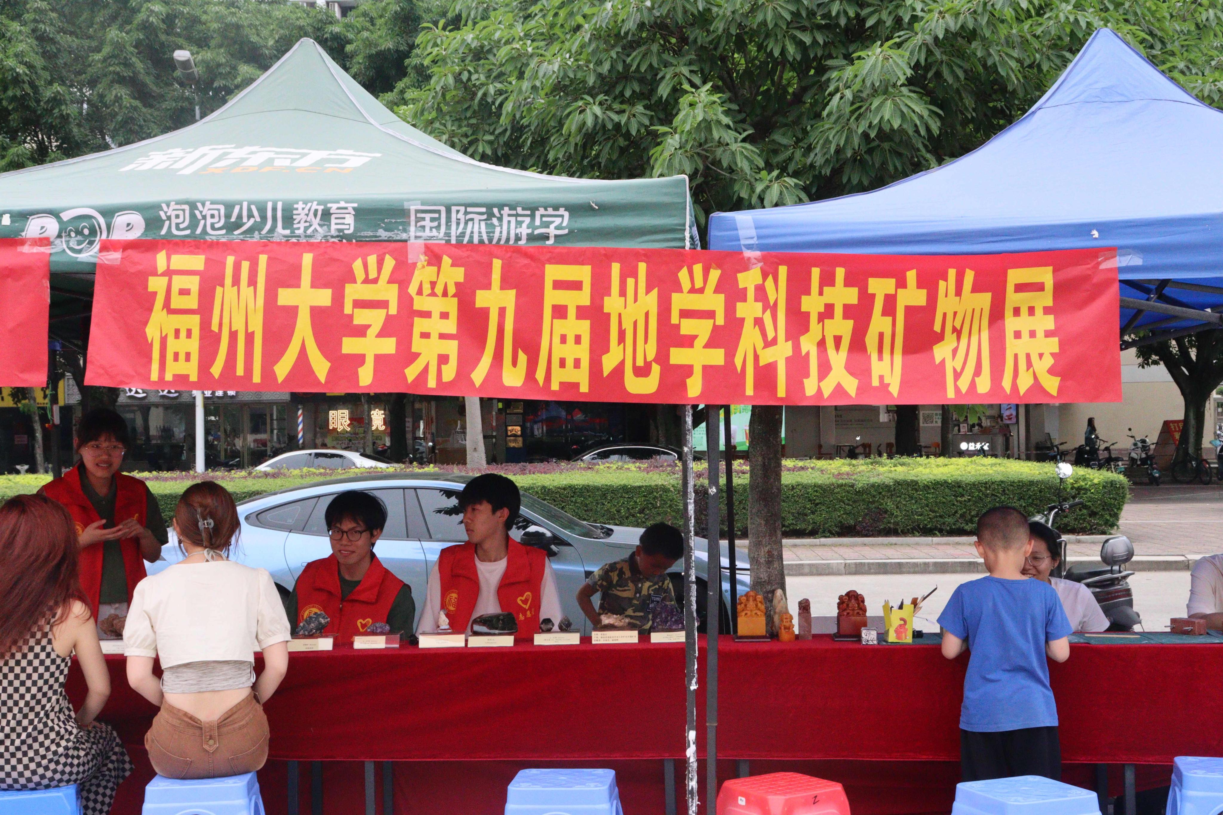 地矿风采展分别于5月19日在福州八中,5月20日在铜盘校区与旗山校区举行,本次活动依托“全国科普教育基地——成人影视 地矿博物馆”,挑选出精美、珍贵的矿物化石、地学模型在室外进行展览,由地矿博物馆志愿讲解员进行讲解。