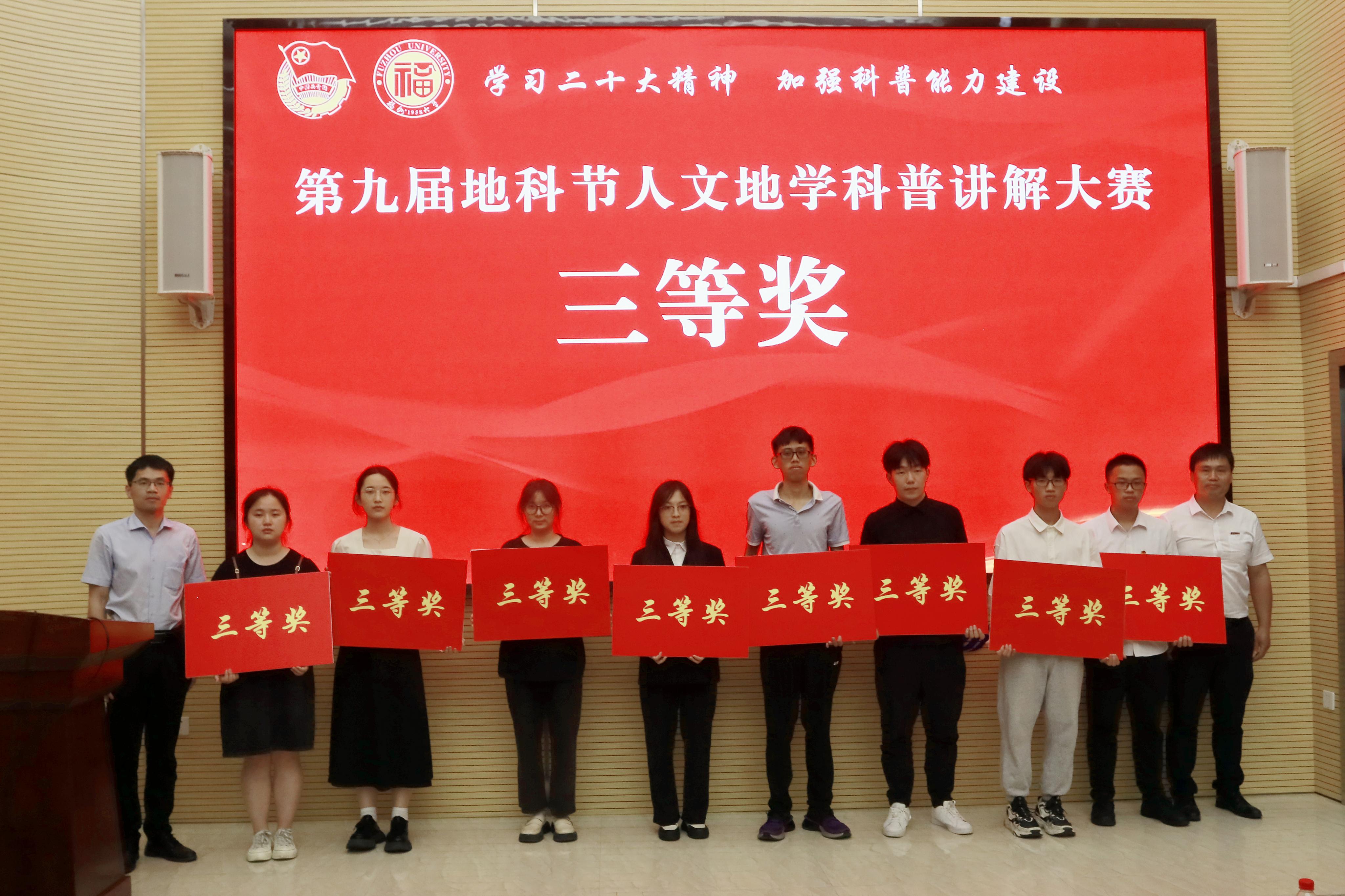 人文地学科普讲解大赛于5月20日晚18:30在泉港楼报告厅举行,校团委谢俊慧老师、石油化工学院团委副书记何杰老师,紫金地质与矿业学院翁威教授、李晓敏副教授、实验中心主任刘建兴老师、团委书记欧国庆老师出席本次活动,各学院共二十二名同学参加本次比赛。