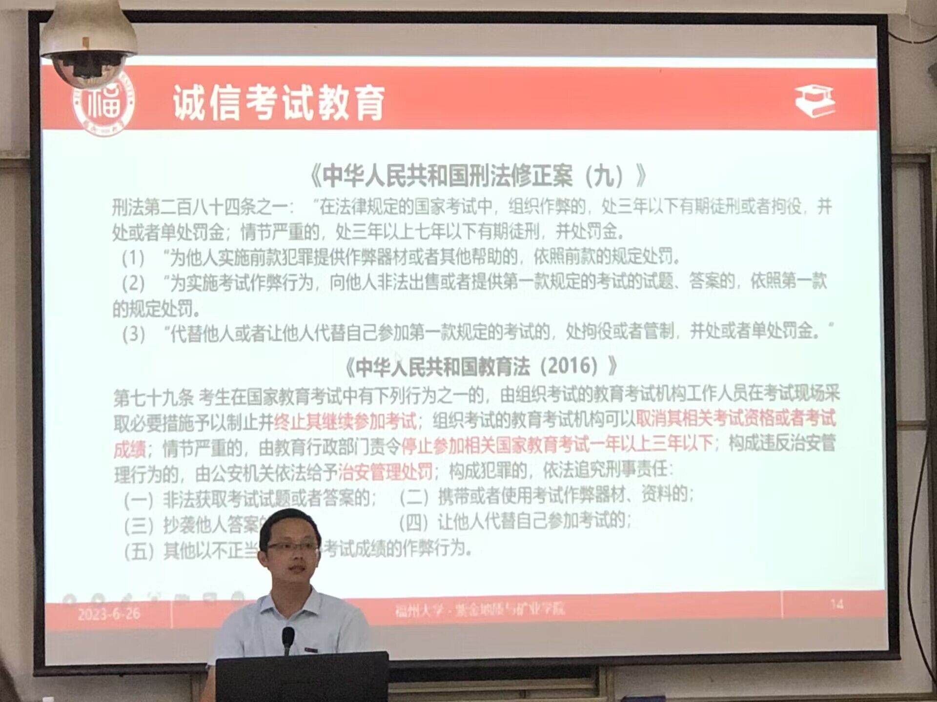 2023年6月26日下午,成人影视 于东三100召开诚信考试教育暨2021级期末学生年级大会。会议由辅导员谢仁栩老师主持,2021级全体本科生参会。