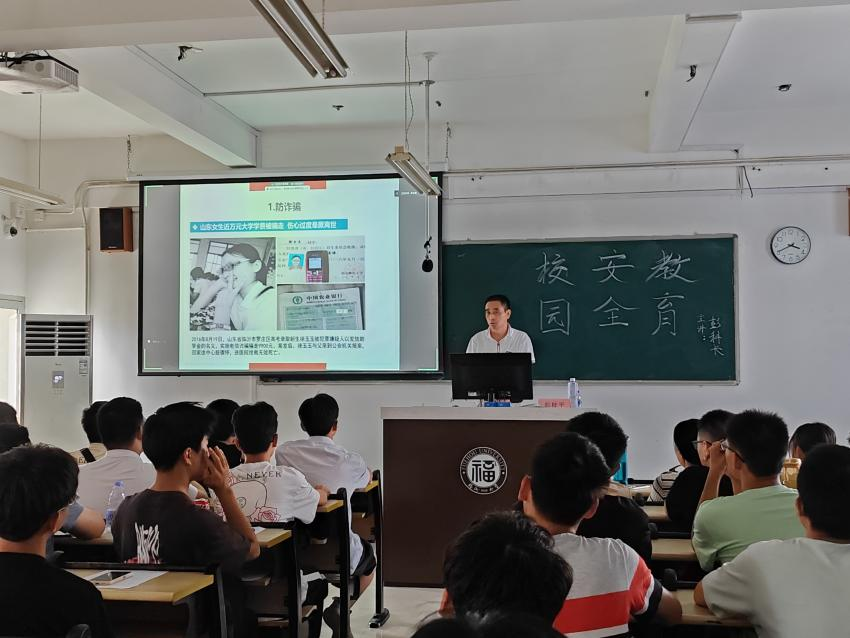 《左传》有言“思则有备,有备无患”。为提升学生在校安全意识,学院于8月29日下午特邀保卫部安全宣传教育科彭桂平科长为2023级新生作大学校园安全教育主题宣讲。彭老师针对大一新生的心理特点,重点强调防诈骗、防盗窃、防火灾等突出问题,并对预防“校园贷”“网络刷单”等新型诈骗进行了细致教育。讲座内容涵盖交通出行、宿舍生活、学习生活、网络安全等有关大学生活的方方面面,为缤纷的大学生活撑起结结实实的“保护伞”。