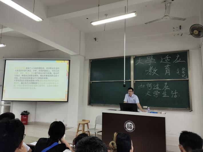 9月1日下午,学院党委张志雄副书记作题为“如何适应大学生活”的讲座。讲座伊始,张书记以亲切的口吻向同学们询问了高考以来的感受和对大学生活的第一印象,同学们积极互动,氛围热烈。之后,张书记针对如何适应大学生活提出几点建议:生活中,要学会独立和自我管理;学习上,要制定目标,做好规划;交友中,要与优秀者为伍,共同进步;性格上,要提升自信,敢于绽放光芒。除此外,张书记还提出,学生应遵守学校的规章制定,做一名守法知礼的新青年。