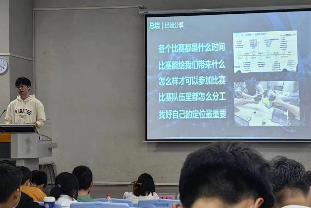 土木学院涂行项目负责人夏宇航对各个项目进行了清晰全面的经验分享,利用表格,图例等形式生动的介绍了项目背景和应用情况等,帮助大家深刻了解了比赛的意义及怎样在比赛中分工合作,找到自我定位,帮助同学们接下来能够得心应手地应对比赛打下了坚实的基础。