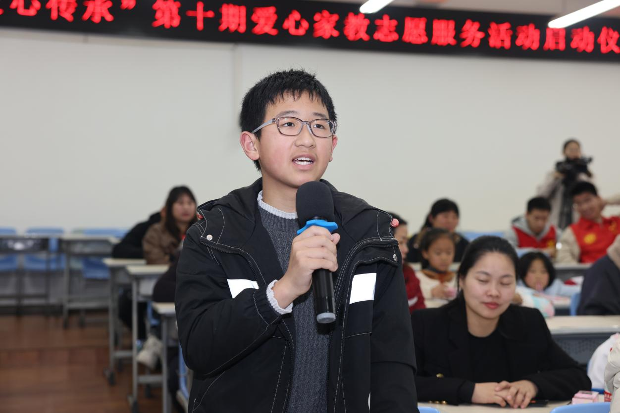 活动伊始,赖吉辉书记追忆了爱心家教的历史,希望志愿者们继承志愿精神,向上向善,积极为社会提供志愿服务。欧国庆书记强调了“紫金情”的羁绊,希望志愿者们用心用情用功做好学业辅导。学生家长黄澄女士也发言感谢集团与学院为此次活动的付出。而后,黄火亮副书记作为曾经的志愿者也讲述了自己和学员的故事,这种羁绊让人感到很有成就感。曾经在第六届爱心家教活动中接受爱心辅导的学员赖静华也现身启动仪式,她表示大学生志愿者的到来帮扶了她的学业,也开阔了她的视野,如今的她已是紫金集团的一名员工,也在积极奉献社会。