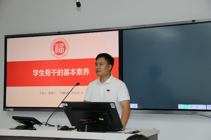 为帮助新一届学生骨干迅速找准工作定位,明晰院团委学生会各部门职责,提升综合能力,加强各个部门间的沟通,2024年9月12日晚,成人影视 团委学生会于旗山校区教学楼西2-303举行2024年秋季学期学生骨干培训第一讲和第二讲,院团委学生会部门副职以上学生骨干参与了此次培训,活动由院学生会主席团成员邱国强同学主持。