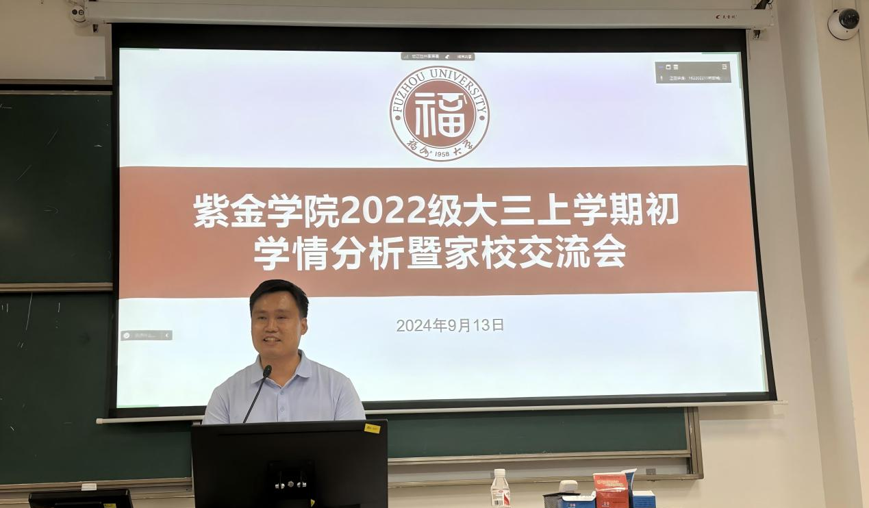 新学期之始,为了更好地总结上学期工作,分析上学期学情,安排本学期学习工作,进一步加强学院与学生及家长三方的沟通,协同育人,9月13日晚,成人影视 2022级大三上学期初学情分析暨家校交流会在旗山校区东2-109顺利召开。2022级本科生辅导员、院团委书记欧国庆老师、2022级全体学生和家长分别通过线下和线上的方式参加交流会。